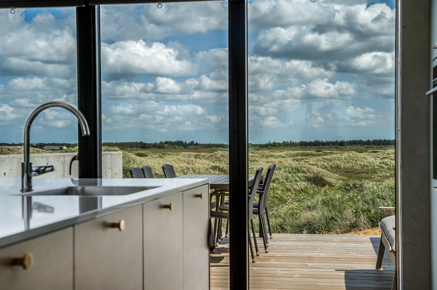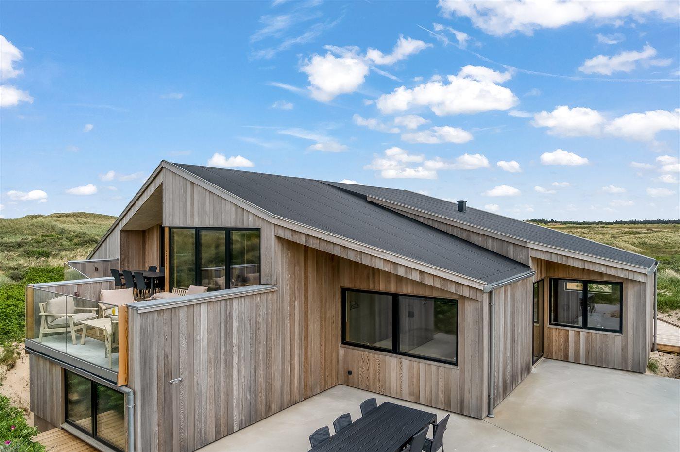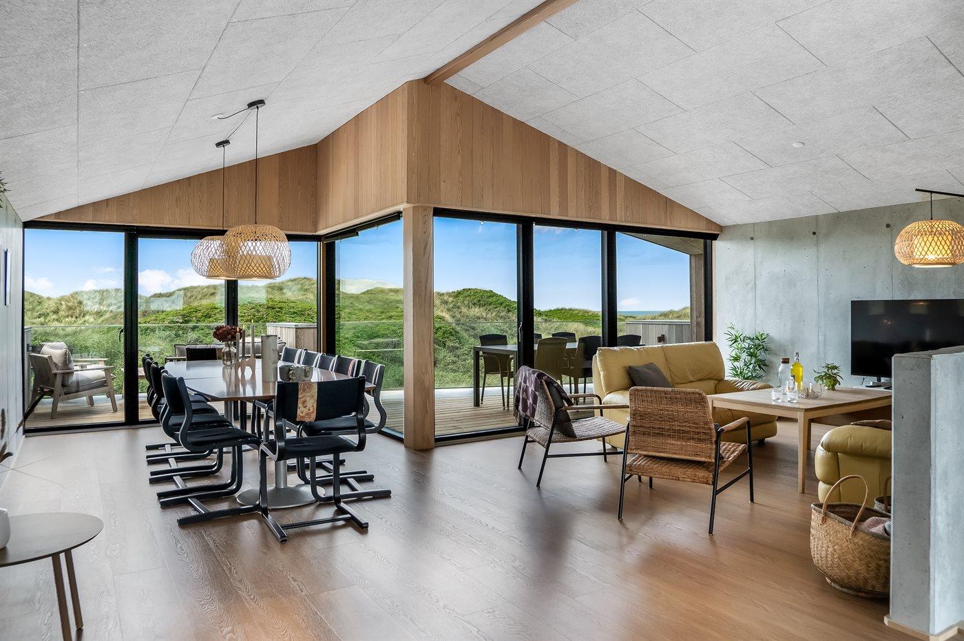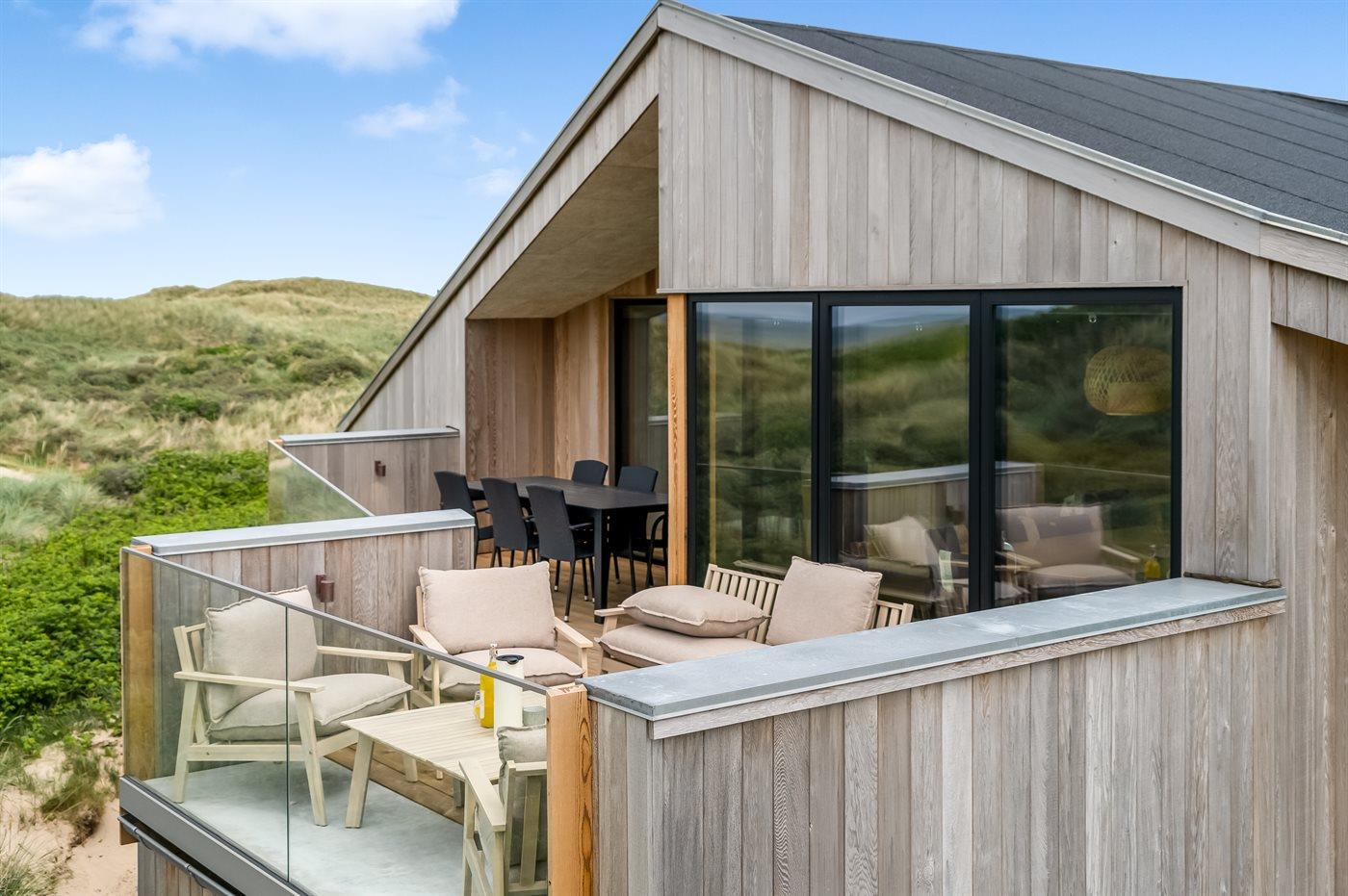 Genießen Sie Meerblick und Luxus in diesem neu erbauten Ferienhaus direkt an der Westküste Dänemarks.