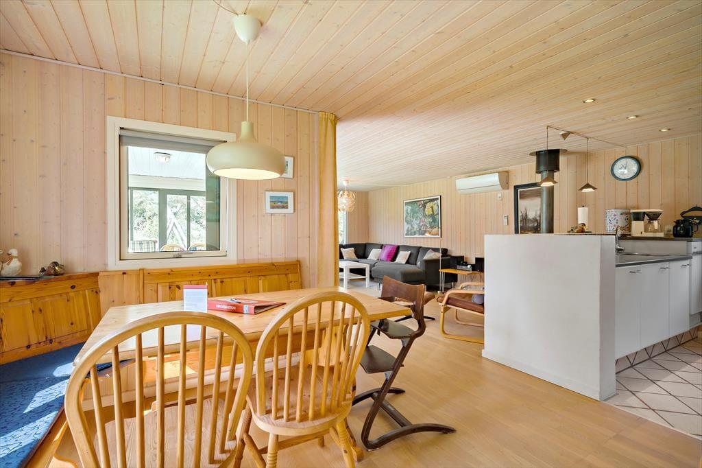 Das Ferienhaus liegt im beliebten Ferienhausgebiet Grønhøj zwischen Blokhus und Løkken. Der Strand hier ist fantastisch und lädt das ganze Jahr über zum Verweilen ein. Mit der Nordsee direkt vor der Tür steht einem erholsamen Urlaub mit langen Spaziergängen am Strand, erfrischenden Bädern und einem leckeren Eis aus dem örtlichen Kiosk nichts im Wege. Wer einen aktiveren Urlaub bevorzugt, findet in der Umgebung zahlreiche Naturerlebnisse und kulturelle Angebote. Genieße den Ausblick vom Rubjerg Knude Fyr, wandere durch die Kettrup Bjerge oder besuche Künstlerwerkstätten und Galerien im charmanten Lønstrup. Løkken liegt noch näher und bietet eine Vielzahl an Geschäften und gemütlichen Restaurants, in denen du dich und deine Liebsten mit einem guten Essen verwöhnen lassen kannst. Für die kleinen Gäste ist das Freizeit- und Erlebnisbad Fårup Sommerland ein absolutes Highlight.
