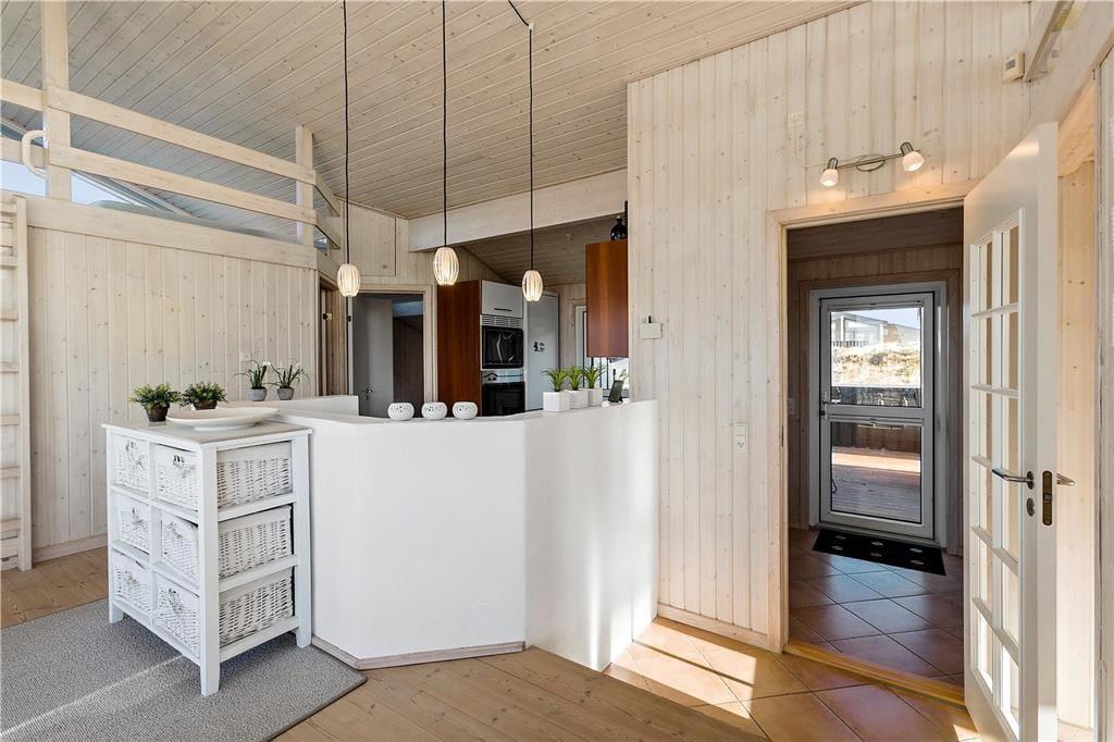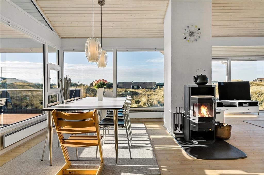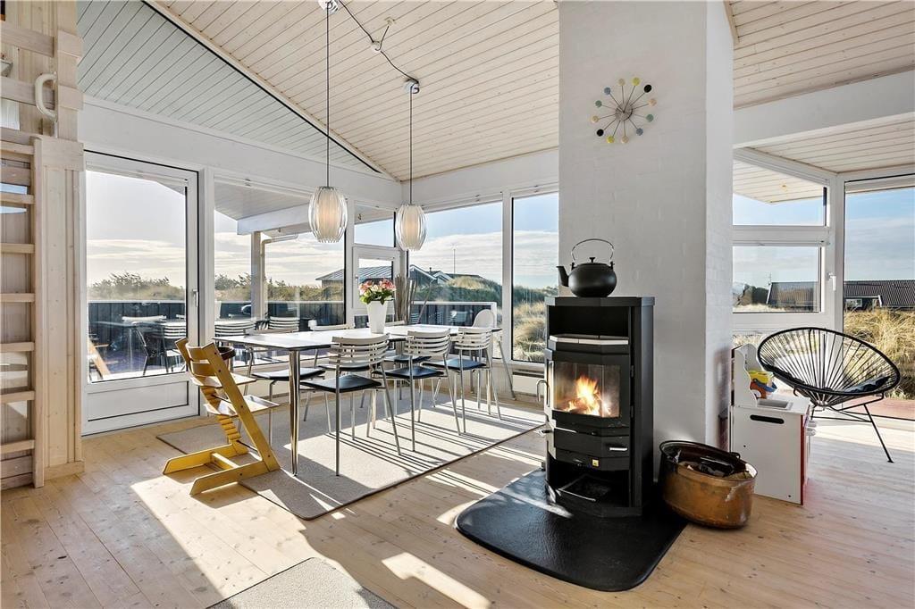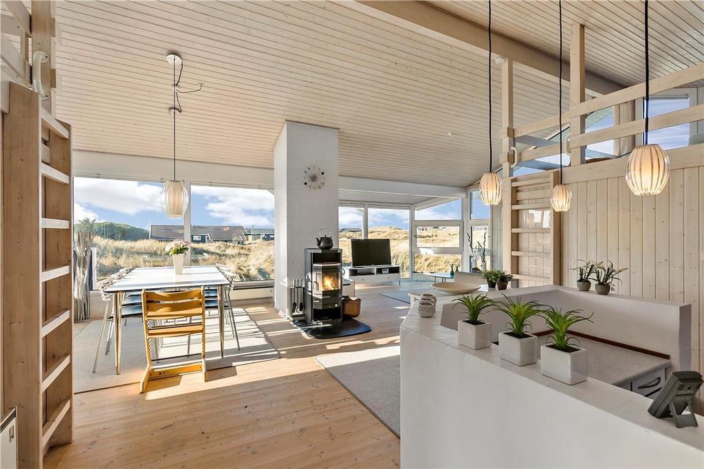 Als das Ferienhaus 1996 erbaut wurde, geschah dies mit hochwertigen Materialien und einem Gespür für stimmungsvolle Details. Zum Beispiel sorgte der Architekt dafür, dass das Ferienhaus mit großen Fenstern ausgestattet wurde, die das Tageslicht und die schöne Naturumgebung hereinlassen, während die hohen Decken und die hellen Holzleisten an den Wänden die richtige Ferienhausatmosphäre schaffen. Die 101 m² der Ferienwohnung sind sinnvoll genutzt und bieten unter anderem drei gute Schlafzimmer, ein Gäste-WC und ein großes Badezimmer. Letzteres ist mit einer gemauerten Dusche, einer Sauna und einem herzförmigen Whirlpool ausgestattet. Wenn nicht alle Entspannungszeiten hier stattfinden, ist es herrlich, sich zurückzulehnen und das Ferienleben im Wohnzimmer zu genießen, das Küche und Wohnzimmer in offener Verbindung umfasst. In der Mitte des Raumes sorgt der Kaminofen für Wärme und gute Stimmung – und wenn ihr Lust habt, die ganze Schönheit von oben zu genießen, könnt ihr die offenen Schlafräume auf der Galerie erklimmen, die leicht zum Lieblingsplatz der Kinder werden können.