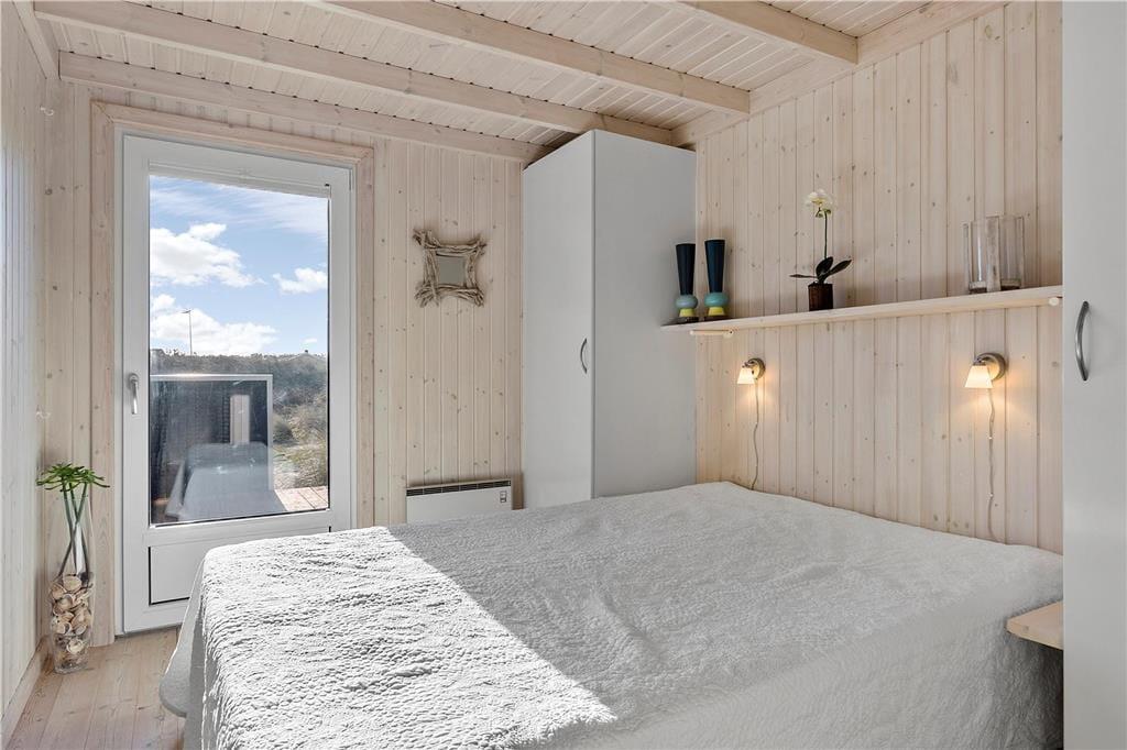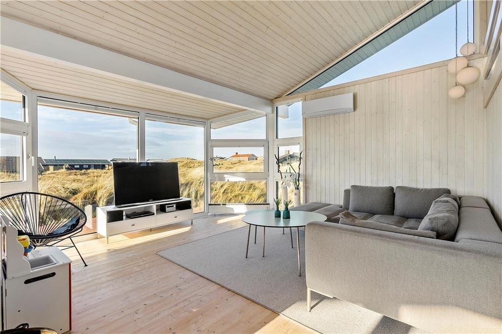 Spa und Sauna im Badezimmer, eine herrliche Terrasse und nur 240 Meter zum Grønhøj Strand. Das ist eine kleine Auswahl der vielen Qualitäten dieses wunderschönen Ferienhauses, das zudem malerisch zwischen den mit Strandhafer bewachsenen Dünen an der kleinen Harrietsvej gelegen ist.