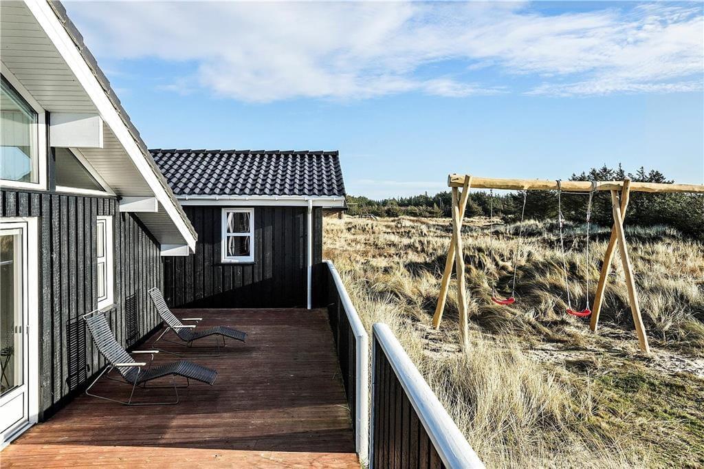 Draußen breitet sich ein schönes Terrassenumfeld über drei Seiten des Ferienhauses aus, sodass es einfach ist, zu jeder Tageszeit einen sonnigen Platz zu finden. Morgenkaffee und Brötchen können auf der Ostterrasse genossen werden, und später am Tag könnt ihr auf den nach Süden ausgerichteten Bereich umziehen, wenn es Zeit für ein Nickerchen in der Sonne ist. Am Abend bevorzugt ihr vielleicht die überdachte Terrasse, denn hier könnt ihr draußen bleiben und die Aussicht auf die Dünenlandschaft genießen, auch wenn der Tau fällt.