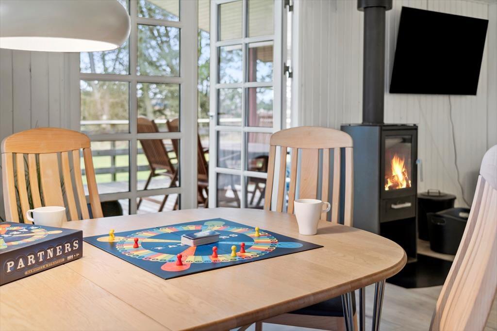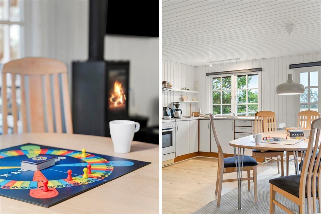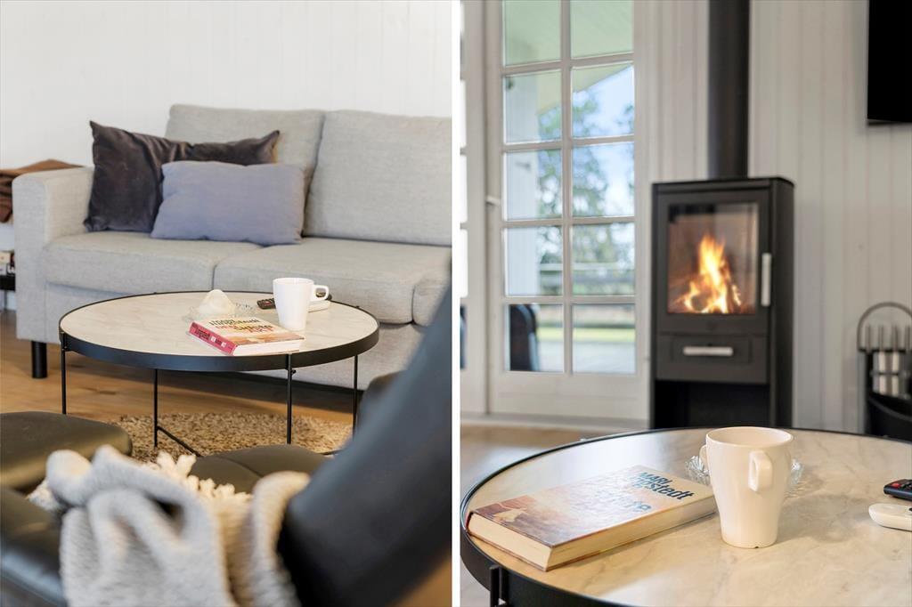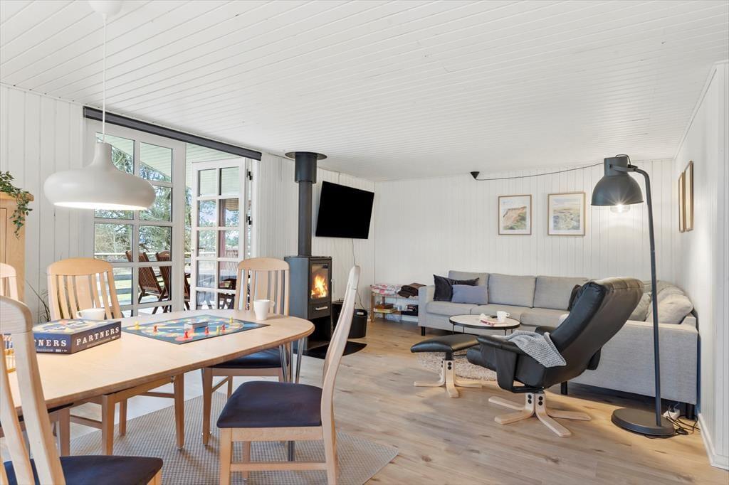 Das Ferienhaus hat eine helle und einladende Atmosphäre und ist so eingerichtet, dass es gut für fünf Personen passt. Die Schlafplätze verteilen sich auf drei schöne Schlafzimmer, und am gleichen Ende des Hauses befindet sich ein schönes Badezimmer mit Dusche. Eine gut funktionierende Küche ist mit dem Wohnzimmer integriert, das auch über einen guten Esstisch verfügt, um sich zu versammeln, sowie über eine gemütliche Sofaecke für entspannte Stunden. Es gibt einen Flachbildfernseher mit Kabel-TV und Chromecast – und wenn ihr nicht viel Unterhaltung braucht, aber einfach etwas Schönes anschauen möchtet, könnt ihr aus dem Fenster auf die weite Landschaft blicken.