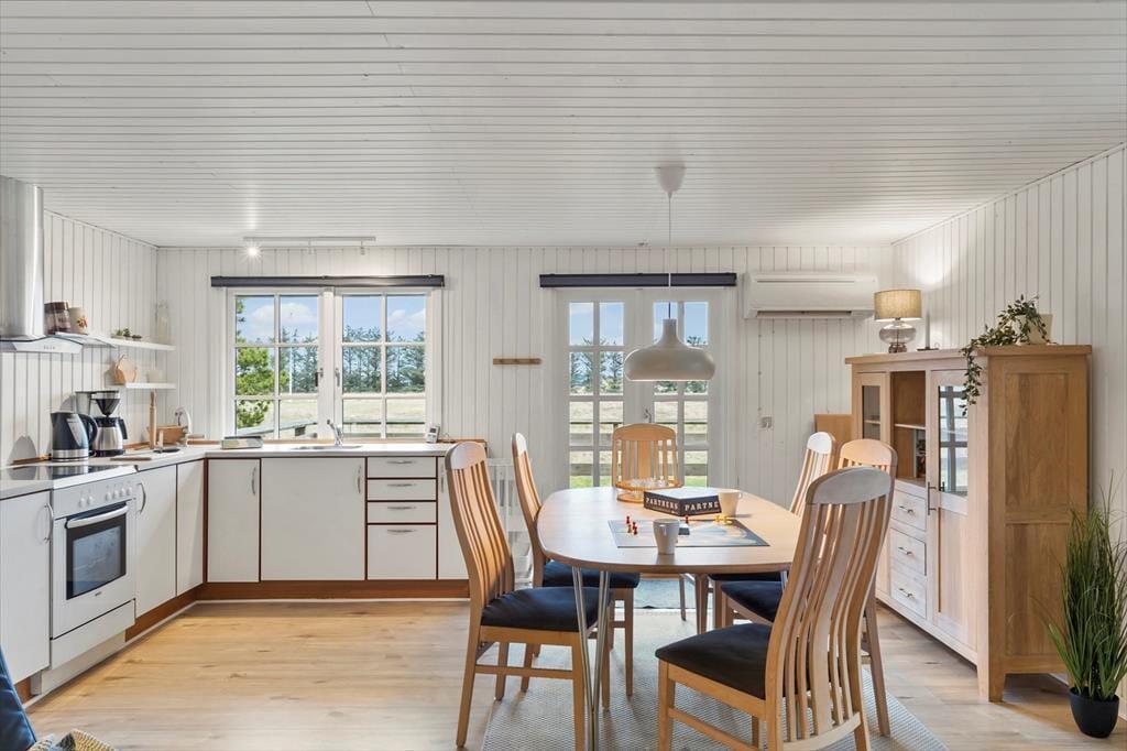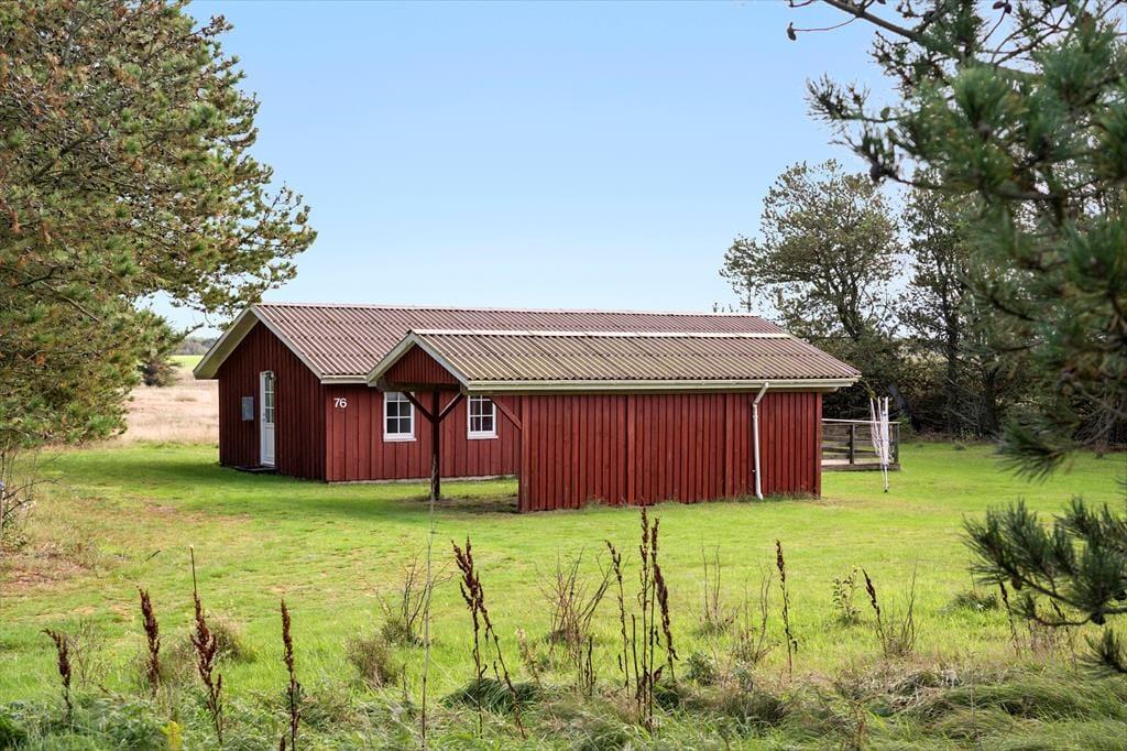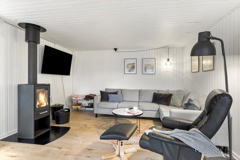 Das 1277 m² große Naturgrundstück ist ideal für diejenigen, die ruhig und naturnah wohnen möchten. Es ist angenehm, am Ende der Straße zu wohnen, und gleichzeitig ist es einfach, sich in der Umgebung über Wanderwege zu bewegen. Grønhøj Strand ist nur etwas mehr als einen Kilometer entfernt, sodass ein Spaziergang zum Nordseestrand eine gute Möglichkeit ist. Wenn ihr Fahrräder dabei habt, könnt ihr euch darauf freuen, die kleinen Straßen und die wunderschöne Natur der Region zu erkunden. Zum Beispiel könnt ihr nach Ingstrup fahren, um beim lokalen Käsegeschäft einzukaufen, und wenn ihr Zugang zu weiteren Geschäften und gemütlichem Stadtleben haben möchtet, ist es eine gute Idee, in Richtung Løkken zu fahren.