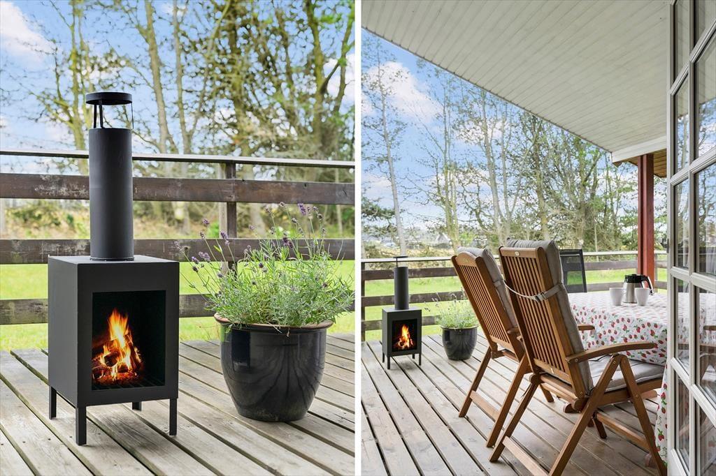 Der Blick auf das Naturschutzgebiet trägt ebenfalls dazu bei, das Outdoor-Leben noch schöner zu machen. Eine große und schöne Terrasse ist nach Osten und Süden ausgerichtet, sodass es gute Chancen gibt, einen Platz in der Sonne zu finden – oder unter der Überdachung, wo ihr außerdem gut vor dem Wind geschützt seid. Es gibt Gartenmöbel und Liegestühle, und wenn ihr grillen möchtet, gibt es reichlich Gelegenheit, im Freien zu kochen.