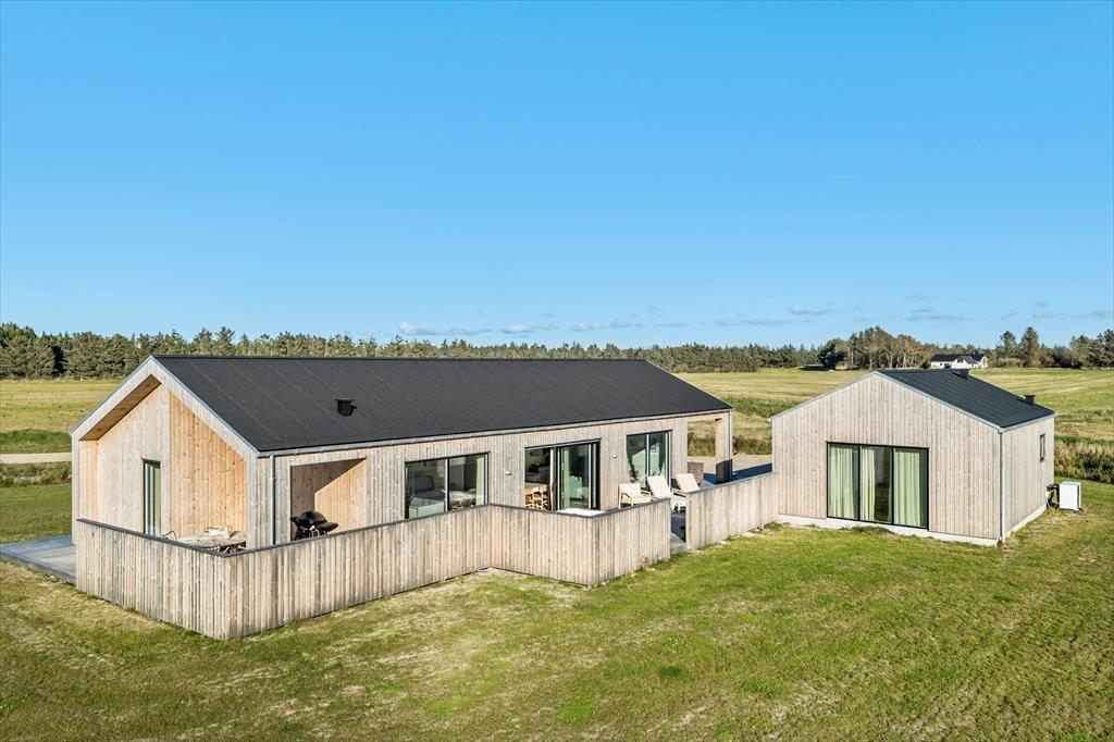 Wenn die Sonne hoch am Himmel steht, bietet es sich an, an den Strand zu gehen oder die wunderschöne Natur rund um Grønhøj zu erkunden – aber vergiss nicht, auch Zeit einzuplanen, um auf der herrlichen Terrasse des Hauses zu entspannen. Von allen Schlafzimmern sowie vom Wohnzimmer und dem Aktivitätsraum gibt es direkten Zugang zur Holzterrasse, sodass der Außenbereich wie eine natürliche Verlängerung des Hauses wirkt. Je nach Wetter und Stimmung kannst du dich unter freiem Himmel oder in einem der überdachten Bereiche niederlassen. Und wenn es draußen ein wenig kühl ist, fühlt sich ein warmes Bad im wunderbaren Außen-Whirlpool der Terrasse besonders wohltuend an.