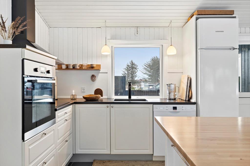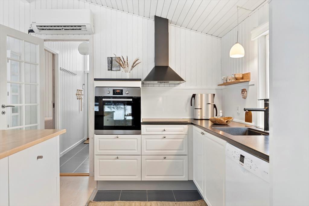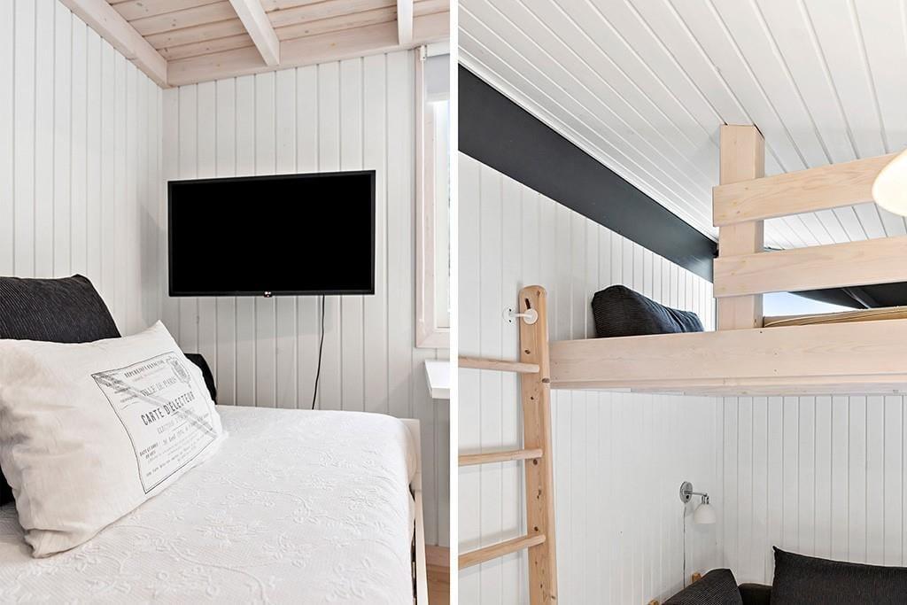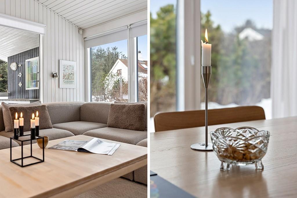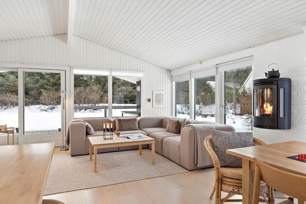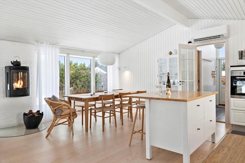 Das Ferienhaus ist mit Fokus auf Licht, Gemütlichkeit und gute Rahmenbedingungen für gemeinsame Zeit eingerichtet. Das Herz des Hauses ist das Wohnzimmer, das in offener Verbindung mit der stilvollen und geräumigen Küche liegt. Hier kannst du mit lokalen Zutaten zaubern, während am Esstisch angeregt geplaudert wird, oder ihr macht es euch gemeinsam auf dem Sofa gemütlich und lasst den knisternden Kaminofen am Abend die Stimmung bestimmen. Der Grundriss bietet reichlich Platz für die Familie mit zwei schönen Schlafzimmern, einem gemütlichen Annex sowie zwei modernen Badezimmern. Das ganze Haus strahlt eine entspannte Ferienhausatmosphäre aus, in der man sich vom ersten Moment an zu Hause fühlt.