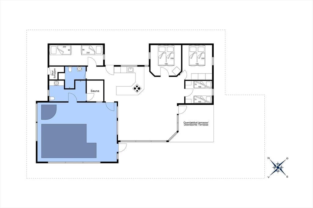Diese Unterkunft hat eine Fläche von 165 m² und befindet sich auf einem 2.500 m² Grundstück, u.a. mit Schaukel, Sandkasten und Trampolin.