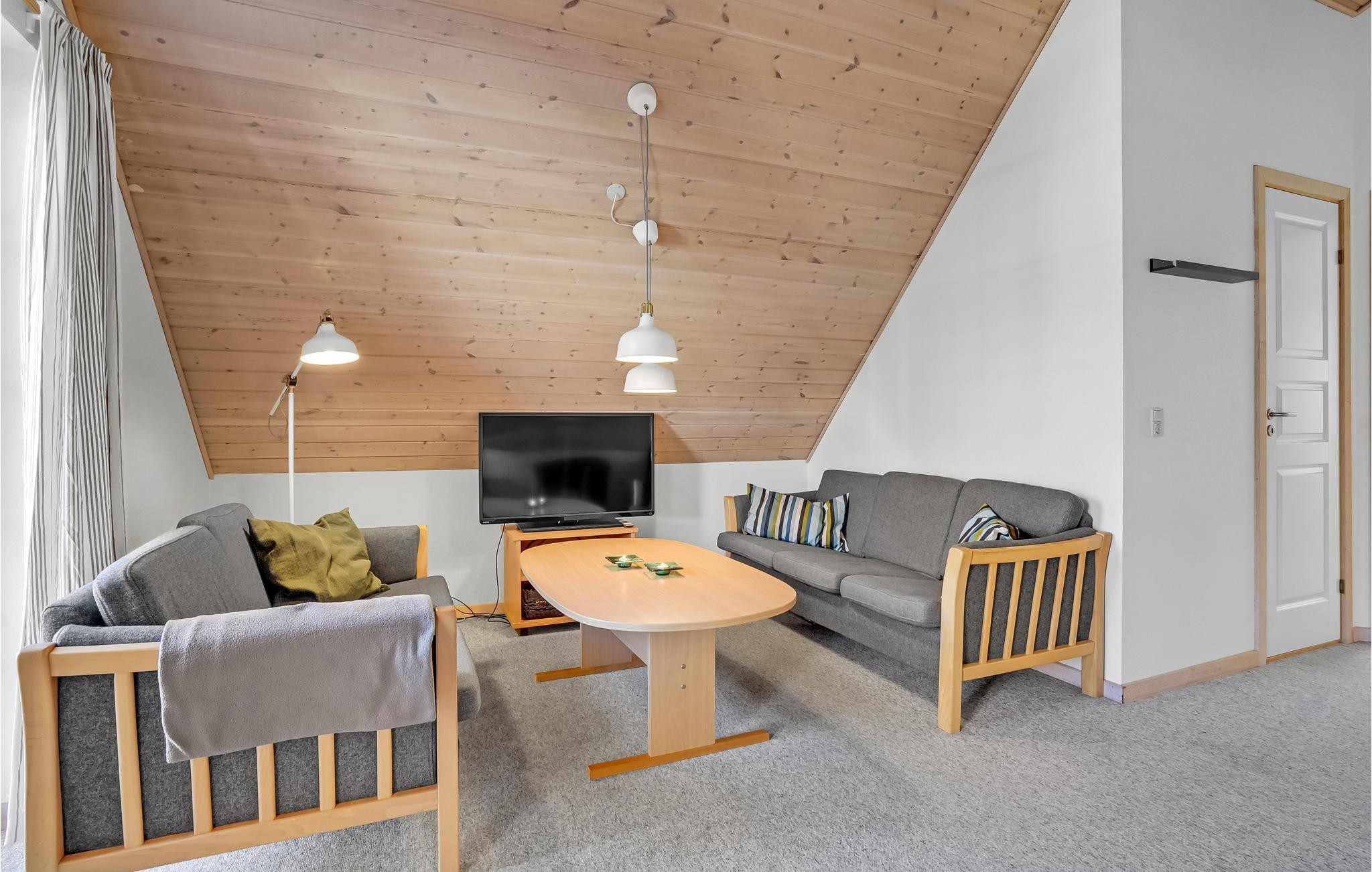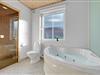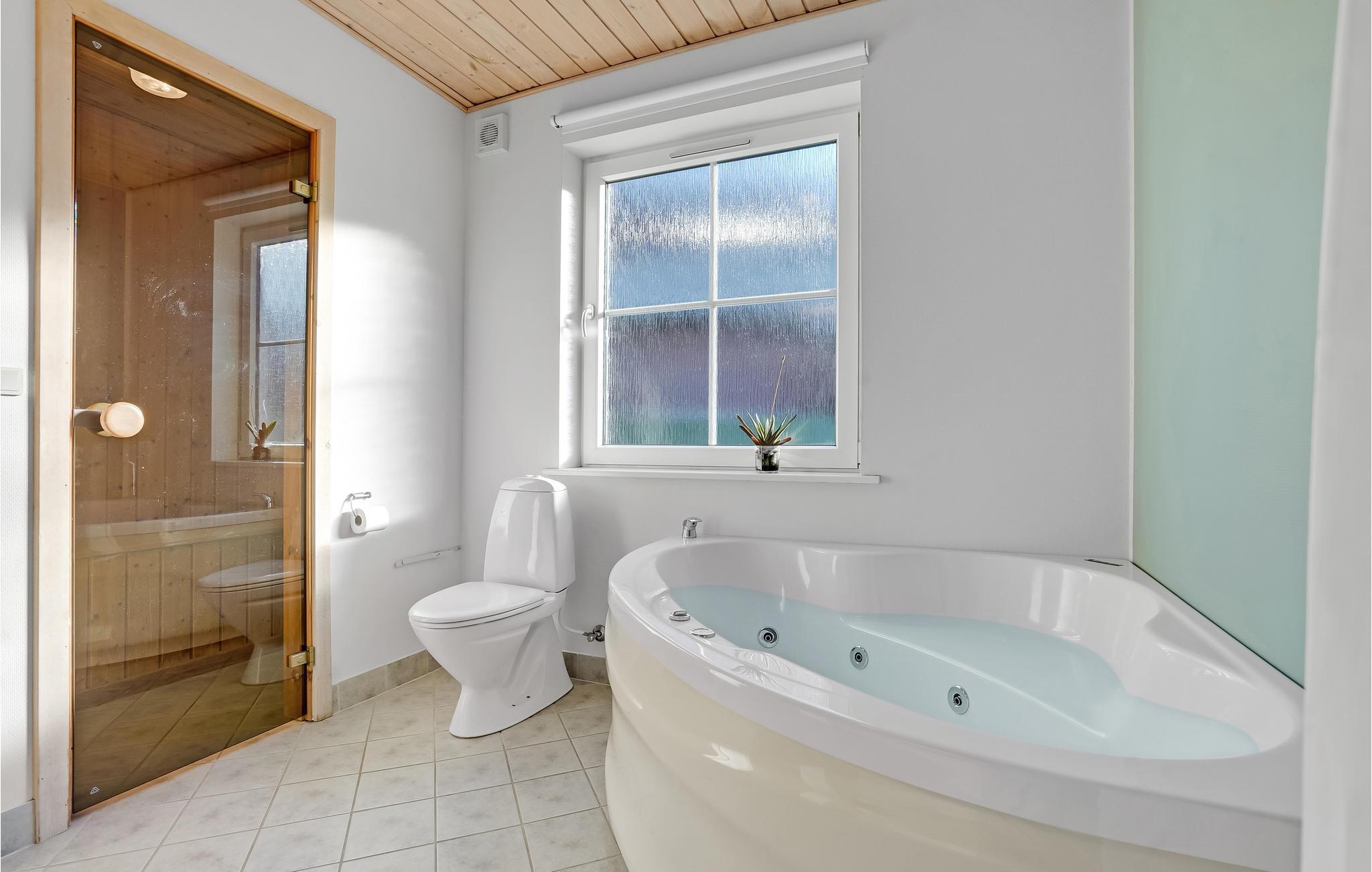 Im typisch skandinavischen Ferienhaus haben Sie es ruhig und komfortabel, genießen es, in der Sauna oder im Whirlpool zu sitzen, und freuen sich, von hier schon einen Blick aufs Wasser zu erhaschen.