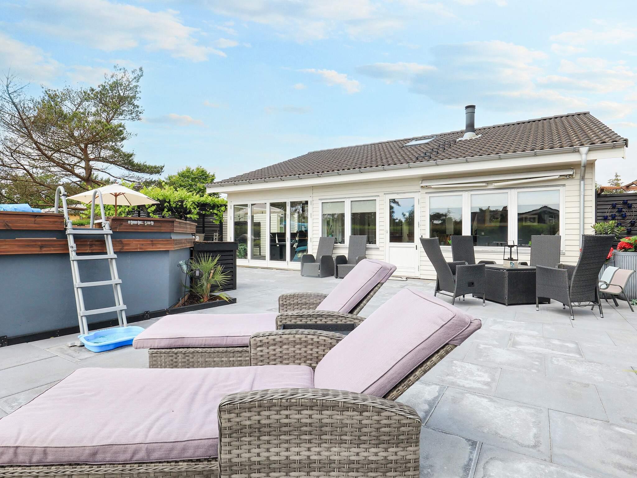 Auf der großen Terrasse des Ferienhauses finden Sie eine praktische Außenküche mit Gasofen, Gasgrill, Pizzaofen und Küchenspüle. Auf derselben Terrasse gibt es auch eine Außendusche mit K+W Wasseranschluss. Liegestühle und mehrere gemütliche Ecken auf der Terrasse. Der Garten ist einigermaßen ungestört und verfügt über eine ziemlich hohe Hecke in Richtung der Nachbarhäuser.