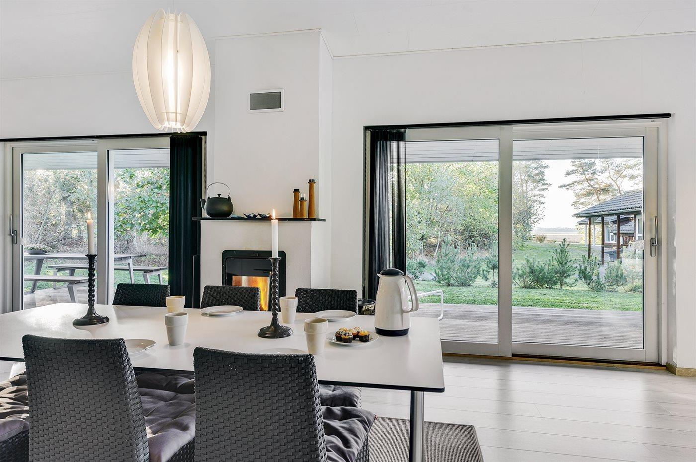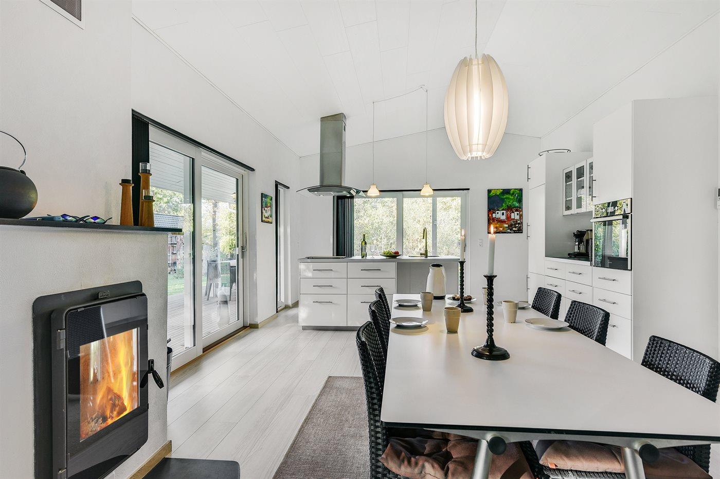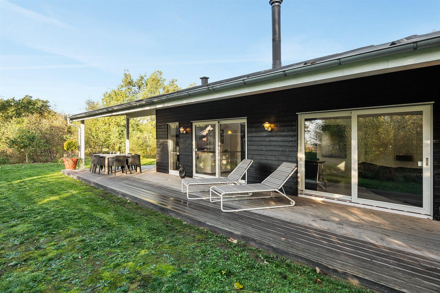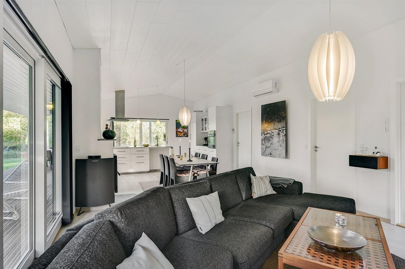 Die Ferienunterkunft liegt auf einem 1250 m² großen Naturgrundstück. Die Entfernung zum Fjord beträgt 400 m. Die nächste Einkaufsmöglichkeit liegt 3000 m entfernt. Außerdem gibt es 43 m² überdachte Terrasse. Geräteraum. Parkplatz auf dem Grundstück.