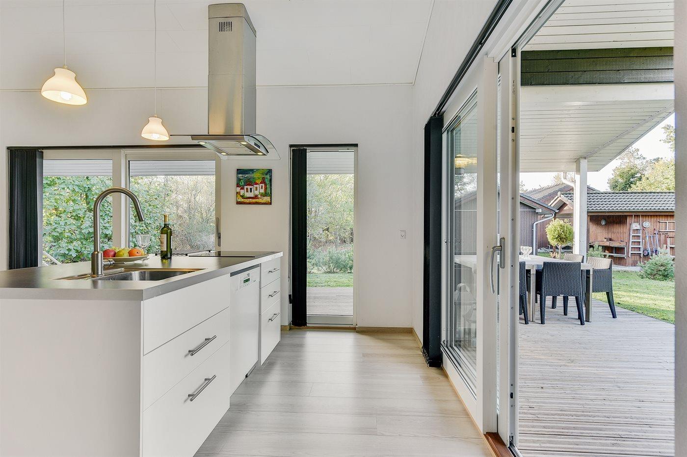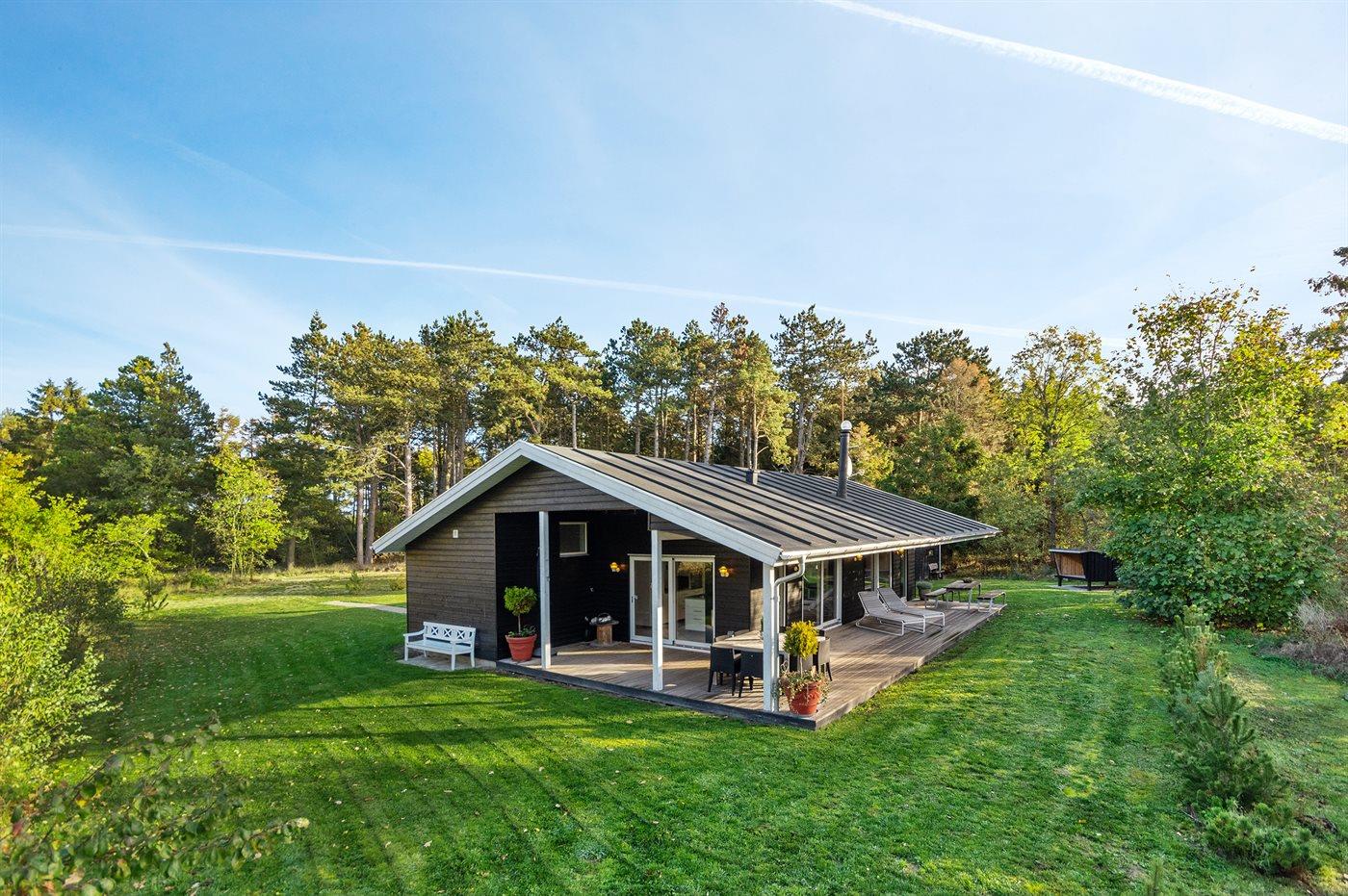 Dieses neu erbaute Ferienhaus mit Aussicht auf das Wasser sowohl vom Haus als auch vom Grundstück, liegt auf einem teilweise abgeschirmten und ungestörten Grundstück. Das Haus liegt in einer Sackgasse in naturschöner Umgebung in einem Waldgebiet an der Ecke von der Förde “Randers Fjord” und Kattegat.
