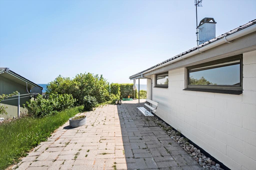 Das Mietobjekt empfängt Sie mit einem Eingangsbereich, von dem aus Sie weiter in den Aufenthaltsraum gelangen, in dem Sie mit einem fantastischen Blick über den Garten und das Meer verwöhnt werden. Die gut ausgestattete Küche fügt sich offen in den Wohnraum mit Essplatz und Ausgang auf die Terrasse ein. Ein Badezimmer und drei Schlafräume stehen zu Ihrer Verfügung. Einer der Schlafräume beinhaltet ein Doppelbett. Im zweiten Raum treffen Sie auf zwei Einzelbetten und im dritten Raum auf ein Einzelbett.