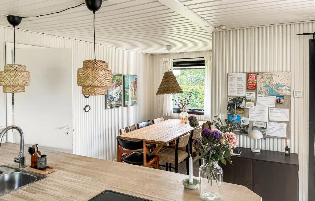 Genießen Sie Ihren Urlaub in diesem einladenden Ferienhaus in Horne Sommerland, das mit einer großzügigen, teilweise überdachten Terrasse ausgestattet ist – perfekt für entspannte Sonnenbäder und gesellige Grillabende. Das moderne und stilvolle Interieur umfasst einen gemütlichen Kaminofen, der für zusätzliche Wärme sorgt. Die zahlreichen Fenster fluten das Haus mit Tageslicht, und die offene Küche bietet Ihnen Raum für gemeinsames Kochen.