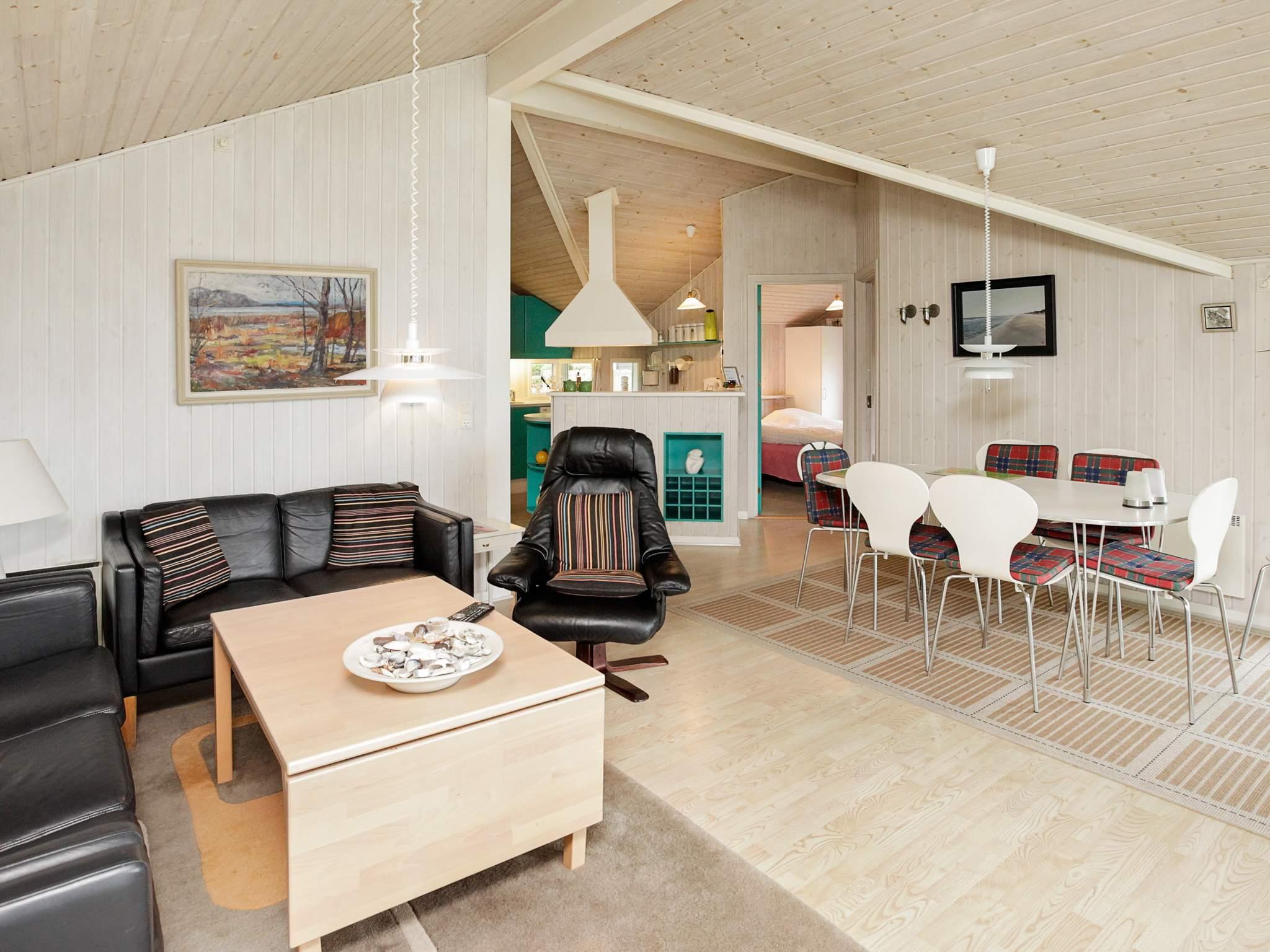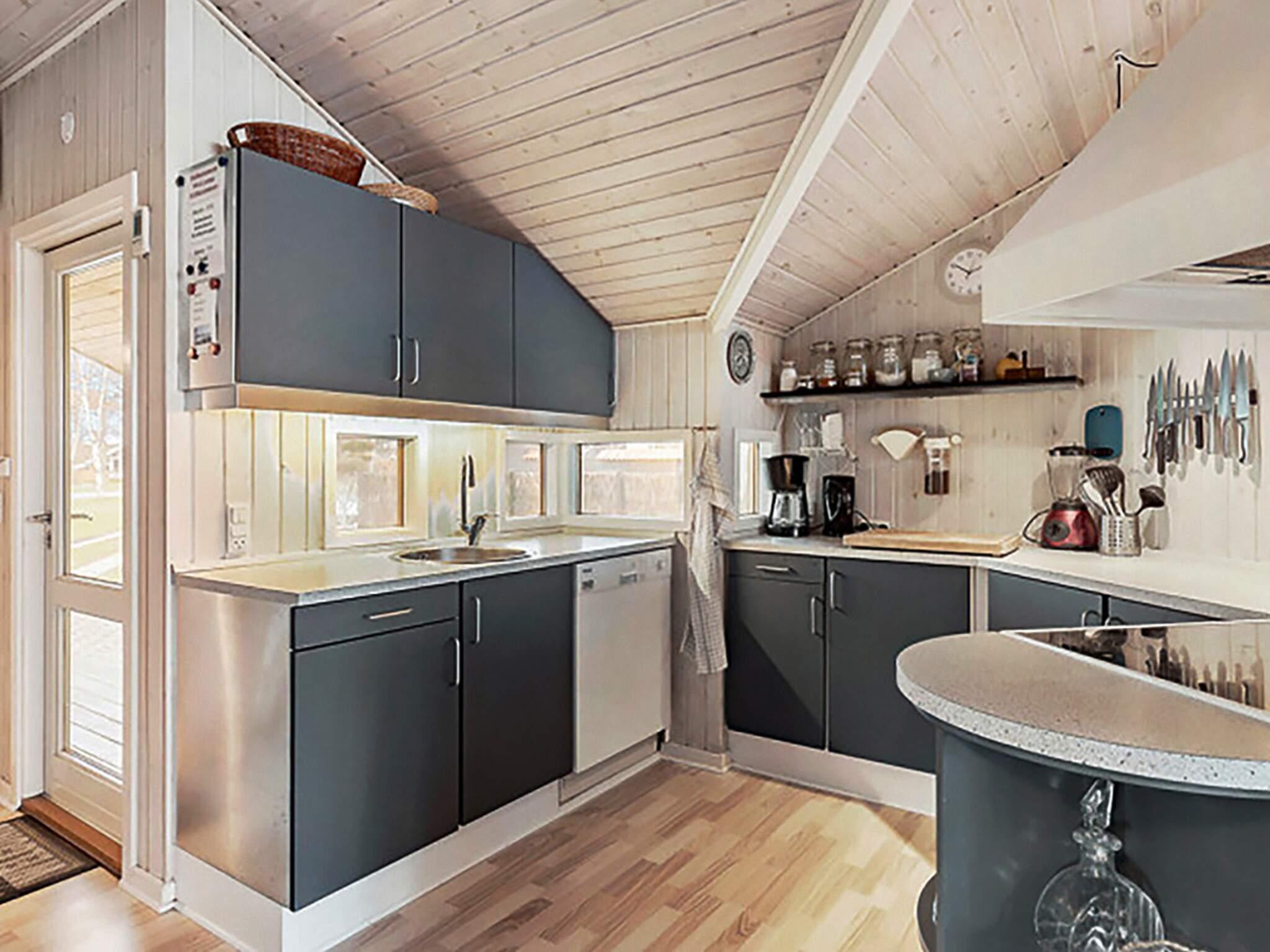 Hübsches Holzferienhaus auf einem Naturgrundstück in 1. Reihe mit Meeresblick über das Kattegat. Das Haus ist hell und gemütlich eingerichtet, u.a. gibt es in der Küche einen Geschirrspüler und eine Mikrowelle. Zum Haus gehören außerdem offene und überdachte Terrassenflächen für schöne Sonnenstunden. Nach einem langen Tag können Sie sich herrlich in der Sauna und dem Whirlpool entspannen. Außerdem gibt es auch einen doppelten Carport und das Doppelbett im Schlafzimmer im Obergeschoss ist höhenverstellbar.