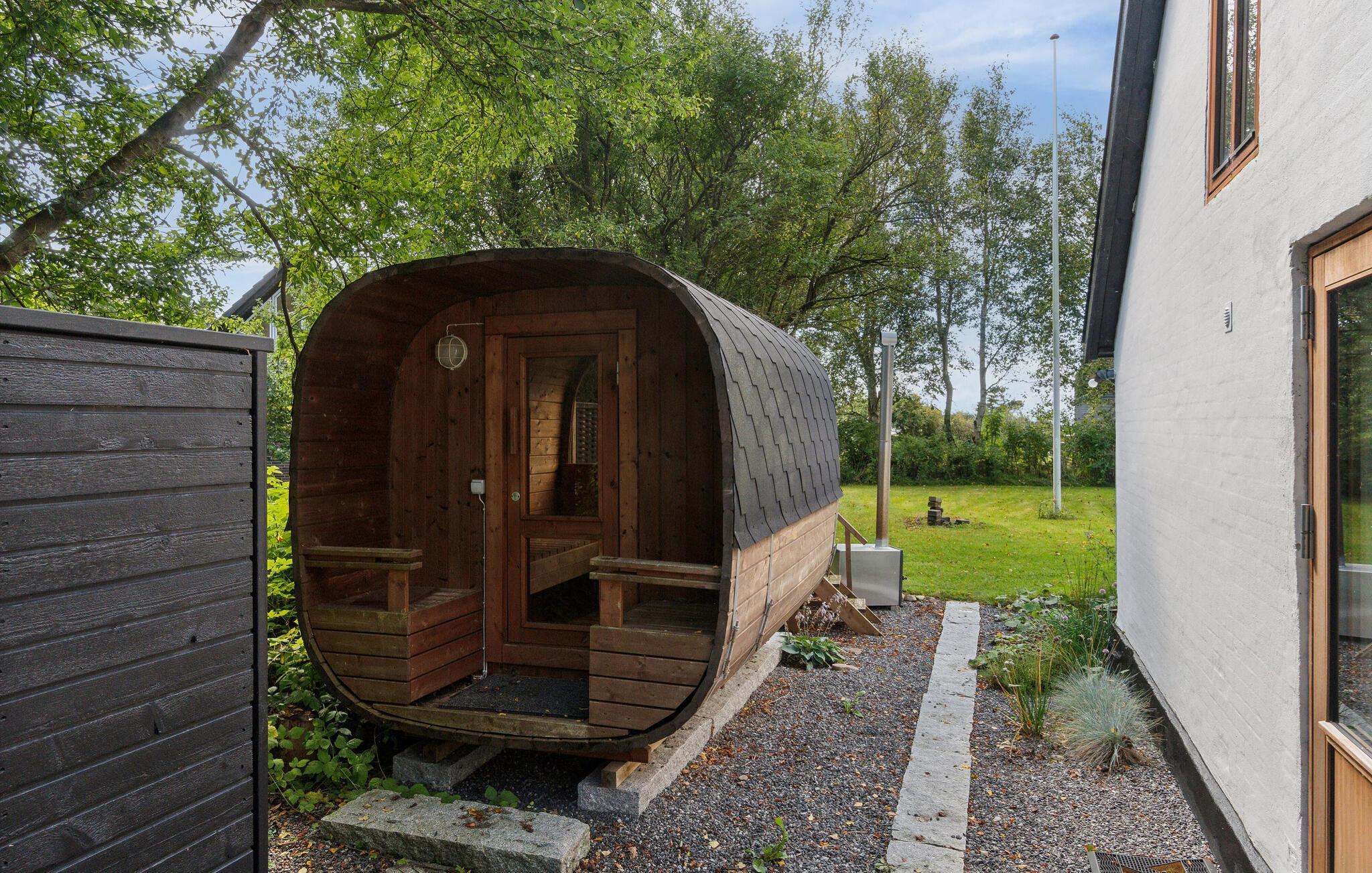 Erleben Sie Ruhe und Komfort in diesem liebevoll gestalteten Ferienhaus mit Sauna und Kamin am Fjord auf Jegindø.