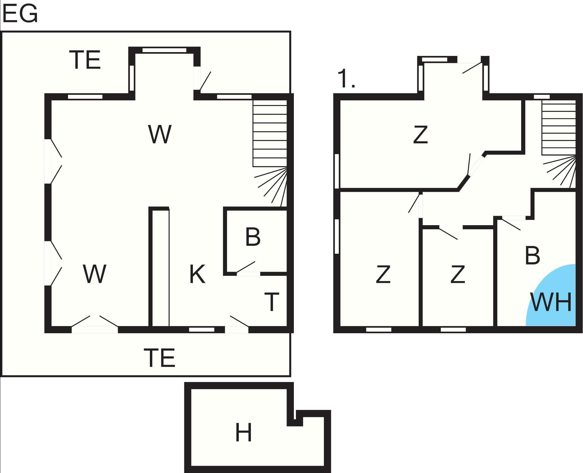 2xBad: WC, Waschb., Dusche, Fußbodenheiz.