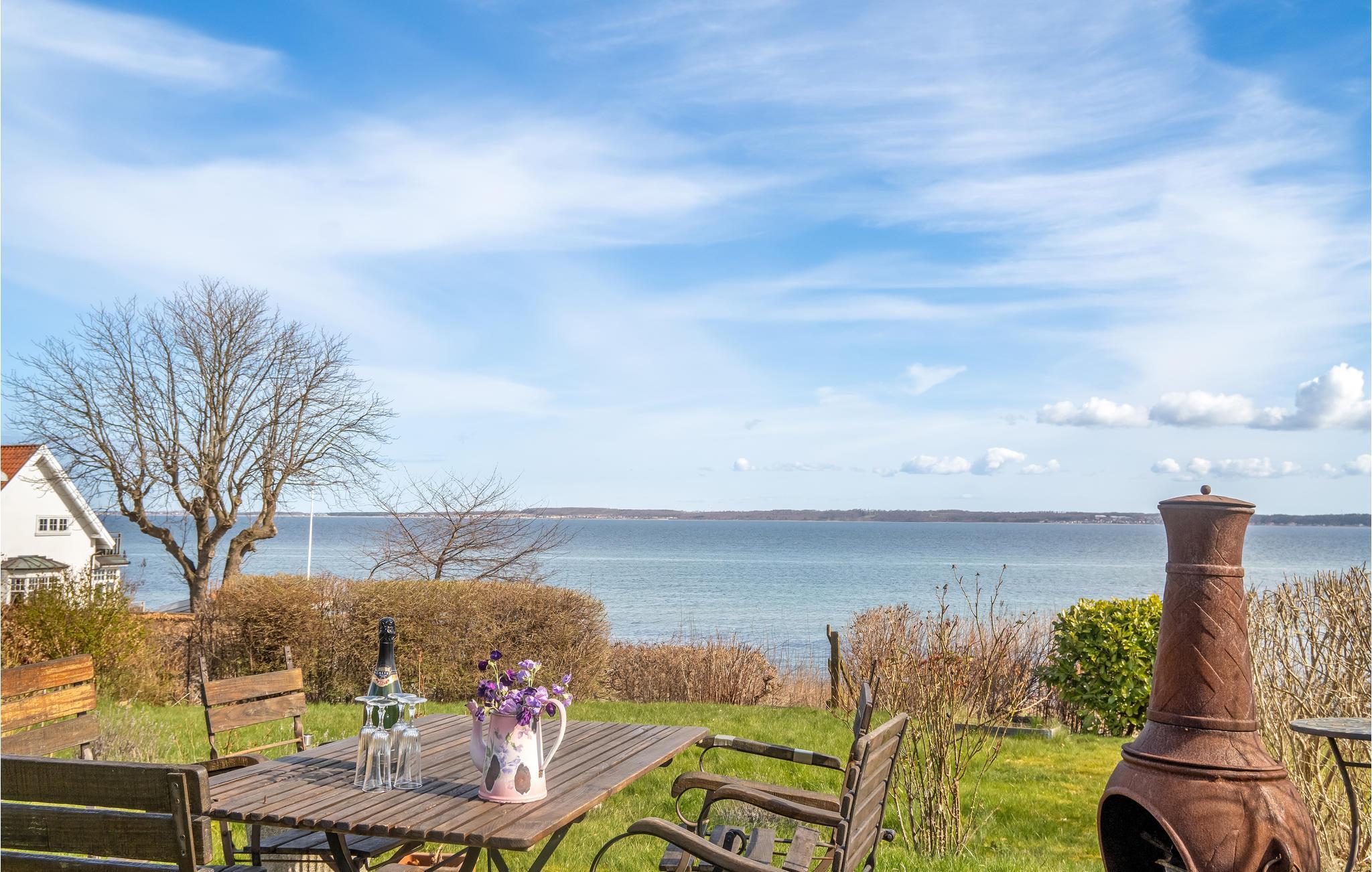 Treten Sie auf die Terrasse und lassen Sie sich auch hier vom atemberaubenden Blick auf das Meer verzaubern. Am Horizont sehen Sie die schwedische Küste, die mit ihren funkelnden Lichtern nach Einbruch der Dunkelheit auch die „Perlen der Königin“ genannt wird, da Sie an eine schimmernde Perlenkette erinnert. Lassen Sie einen herrlichen Urlaubstag mit Essen vom Grill im Freien zu Ende gehen.