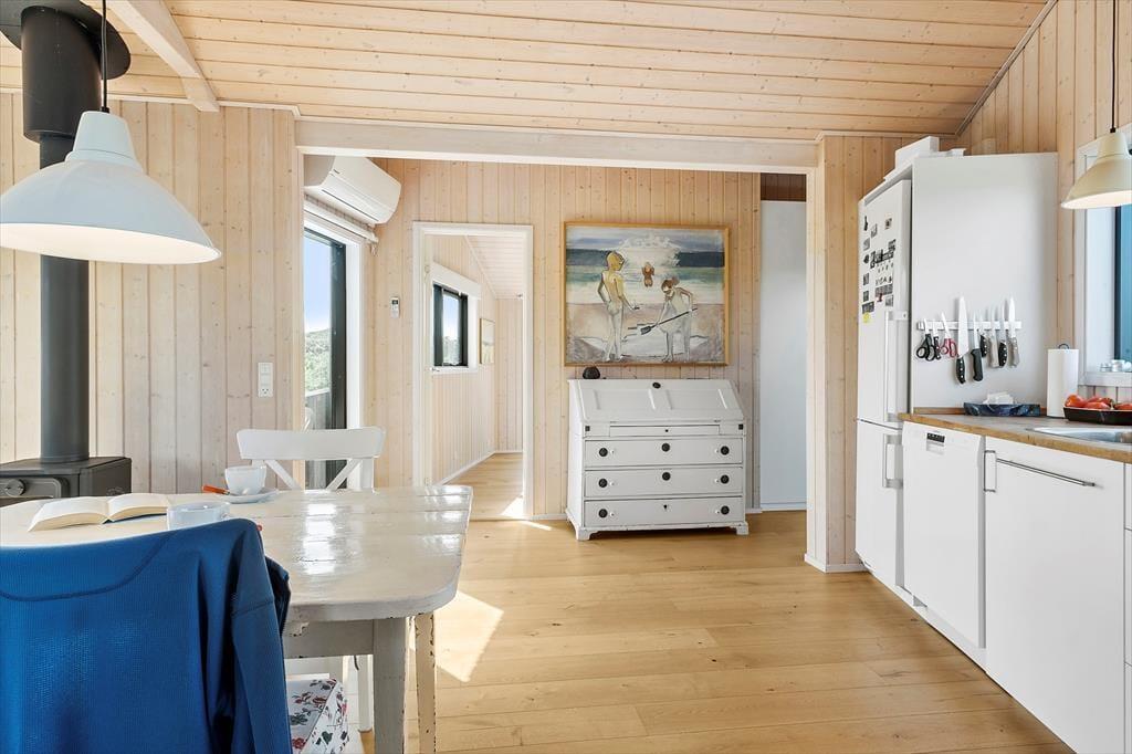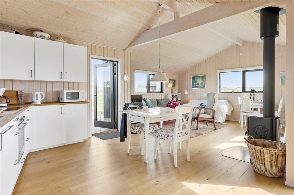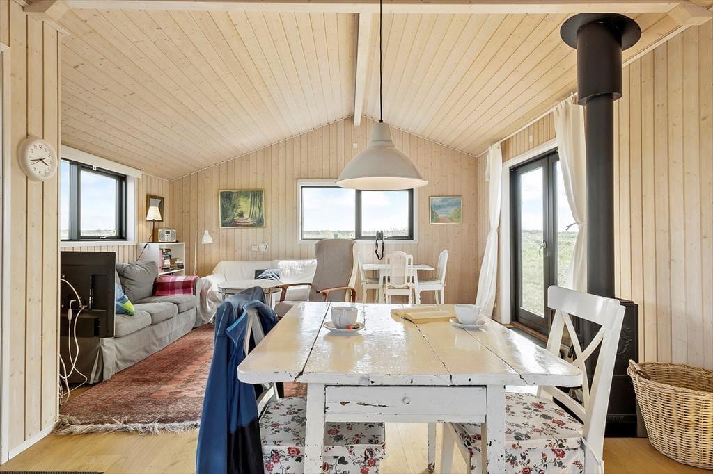 Die bezaubernde Landschaft am Kærsgård Strand bildet eine einmalig schöne Kulisse für erholsame Urlaubstage. Du genießt die traumhafte Ruhe und spürst förmlich, wie sich Körper und Geist regenerieren. Die Einrichtung des Hauses unterstreicht das Urlaubsgefühl. Sie bietet alles Notwendige und etwas mehr. Aufgrund der Winterisolierung kann das Mietobjekt auch außerhalb der Sommermonate genutzt werden. Die Wohnfläche umfasst zwei Schlafräume, ein Badezimmer mit Dusche und einen geräumigen Wohnraum mit einer offen integrierten Küche. Unterhaltung und Abwechslung garantiert der Flachbild-TV mit Parabol-Empfang und Chromecast zum Streamen von Filmen und Serien. Zentral im Raum platziert, verwöhnt ein Kaminofen mit wohliger Wärme. Feuerholz kann in Tornby gekauft werden. Das kleine Nebengebäude ist ebenfalls isoliert, verfügt jedoch nicht über Strom und Wasser. Es beinhaltet ein Schlafsofa und begeistert mit einem tollen Ausblick in die Natur, den du unmittelbar nach dem Aufwachen genießt. Kleine Hunde sind in diesem Ferienhaus willkommen. Deine Recyclingabfälle kannst du praktischerweise beim nahegelegenen Parkplatz entsorgen.