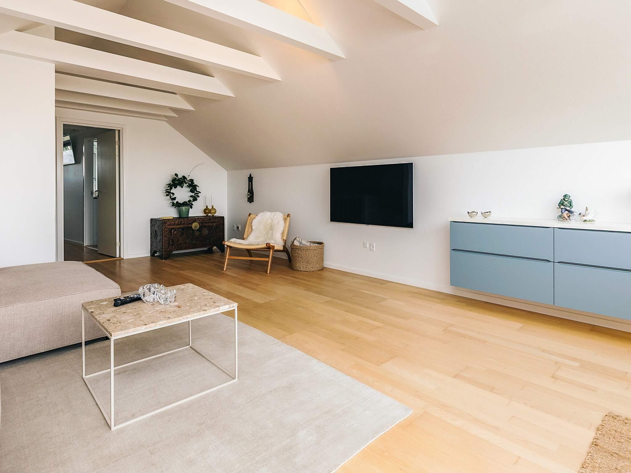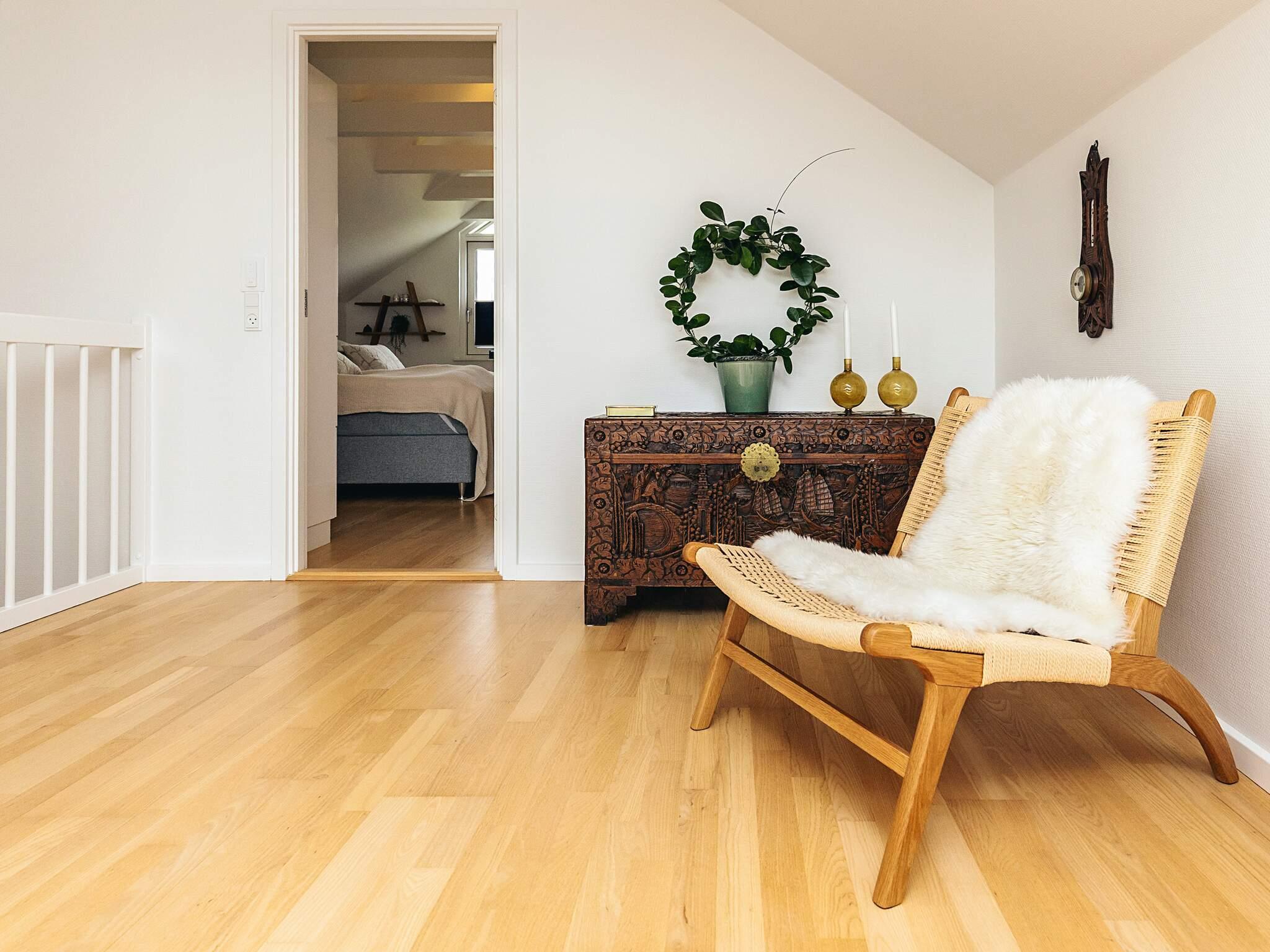 Im Erdgeschoss befinden sich neben der Küche und dem Badezimmer zwei komfortable Schlafzimmer – eines mit Doppelbett und eines mit Schlafsofa. Im Obergeschoss sorgen freigelegte Holzbalken für eine besonders gemütliche Atmosphäre. Hier finden Sie ein Wohnzimmer, ein weiteres Schlafzimmer mit Doppelbett sowie ein zusätzliches Badezimmer.