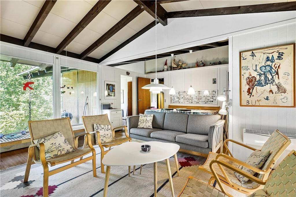 Auf der höher gelegenen, überdachten Terrasse wirst du mit einem schönen Ausblick über das große, hügelige Grundstück verwöhnt. Ein Pfad führt dich und deine Familie an den schönen Sandbadestrand bei Knarbo Klint, der sich übrigens auch bei Anglern großer Beliebtheit erfreut. Wenn du deine Wanderschuhe mit in den Urlaub genommen hast, kannst du auf die Landzunge Odrup Næs hinauswandern. Die unter Naturschutz stehende Spitze der Landzunge ist Odsherreds Antwort auf das berühmte Grenen bei Skagen und begeistert mit einem fantastischen Strand.