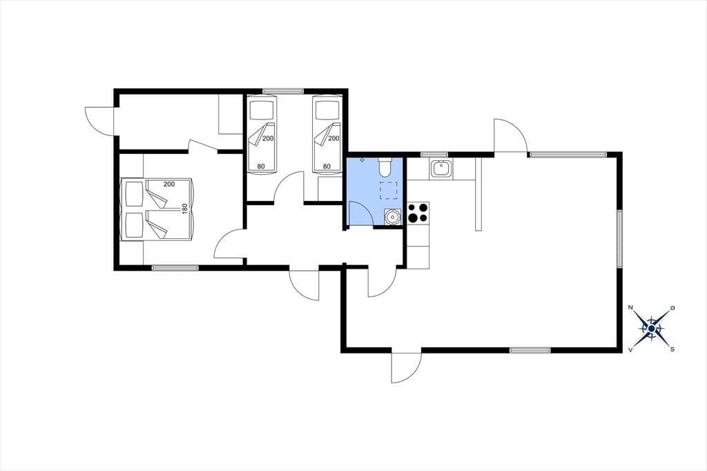 Willkommen in deinem Ferienhaus: Drinnen erwartet Sie eine helle und gemütliche offene Küche, die nahtlos in den Ess- und Wohnbereich übergeht – ideal für gemeinsame Stunden und leckere Mahlzeiten. Das Haus verfügt über zwei Schlafzimmer: eines mit einem komfortablen Doppelbett und das andere mit zwei Einzelbetten, was es sowohl für Paare als auch für kleine Familien perfekt macht. Das Badezimmer ist praktisch eingerichtet mit Dusche, Toilette und Waschbecken. Die helle und einladende Einrichtung des Ferienhauses schafft eine ruhige und entspannende Atmosphäre.