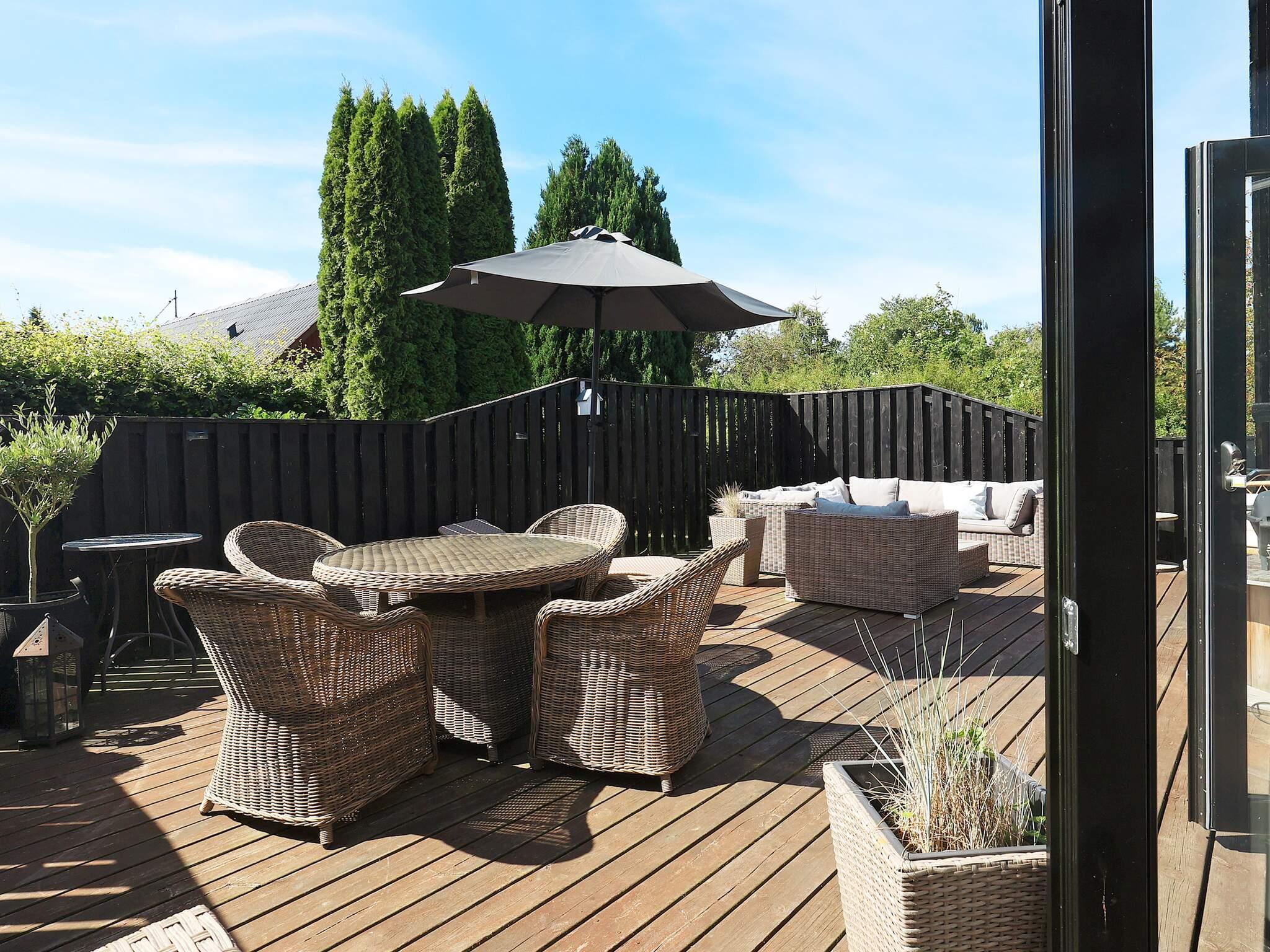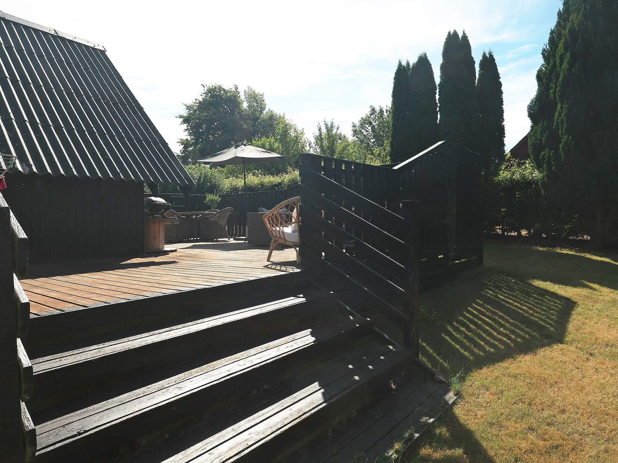 Im Außenbereich schön abgeschirmte Holzterrasse für Sonnentage. Es sind nur etwa 8 Minuten Fußweg hinunter zum Badesteg.