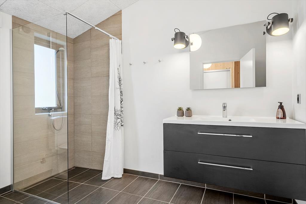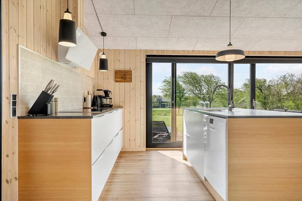 Innerhalb des Ferienhauses ist die Atmosphäre hell und einladend, und alle Räume sind minimalistisch und stillvoll eingerichtet mit modernem Mobiliar. Das 99 m2 große Ferienhaus bietet unter anderem einen herrlichen Aufenthaltsraum mit integrierter Küche, Kaminofen und TV mit sowohl Parabolantenne wie auch Chromecast. Drei gute Schlafzimmer sind auch ein Teil des Bauplans, wovon zwei mit Doppelbett ausgestattet sind und das Dritte mit 2 Einzelbetten. Hier erwartet Sie ein guter Nachtschlaf, und wenn Sie aufstehen, können Sie sich mit einem herrlichen Duschbad in dem schönen Badezimmer erfrischen.