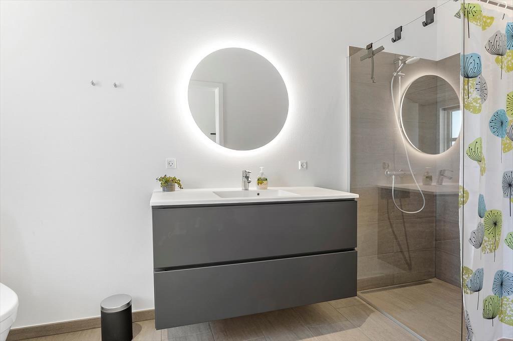 Bei nahezu jedem Wetter ist es einfach wunderschön, sich auf dem Terrassenareal, das sich rund um das gesamte Haus erstreckt, aufzuhalten. An kühlen Tagen oder unter dem funkelnden, dunklen Sternenhimmel genießen Sie wohlig warme Bäder in der schwedischen Badetonne. Sobald die Sommersonne vom Himmel lacht, machen Sie es sich auf den Liegestühlen oder im Schatten des überdachten Terrassenbereichs gemütlich. Das 1.022 m² große Grundstück bietet angenehm viel Platz zum Umhertollen und für Gartenspiele aller Art. Auf dem großen Schotterareal finden gleich mehrere Pkws problemlos Platz. Eine Lademöglichkeit für E-Autos ist vorhanden.