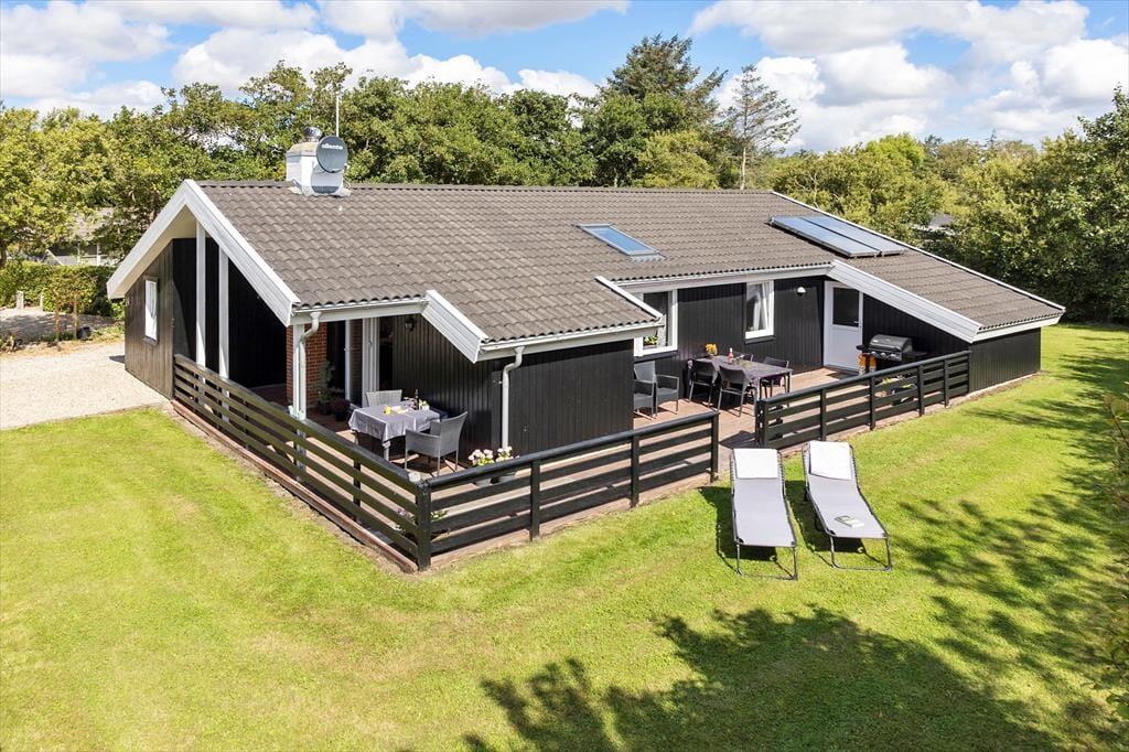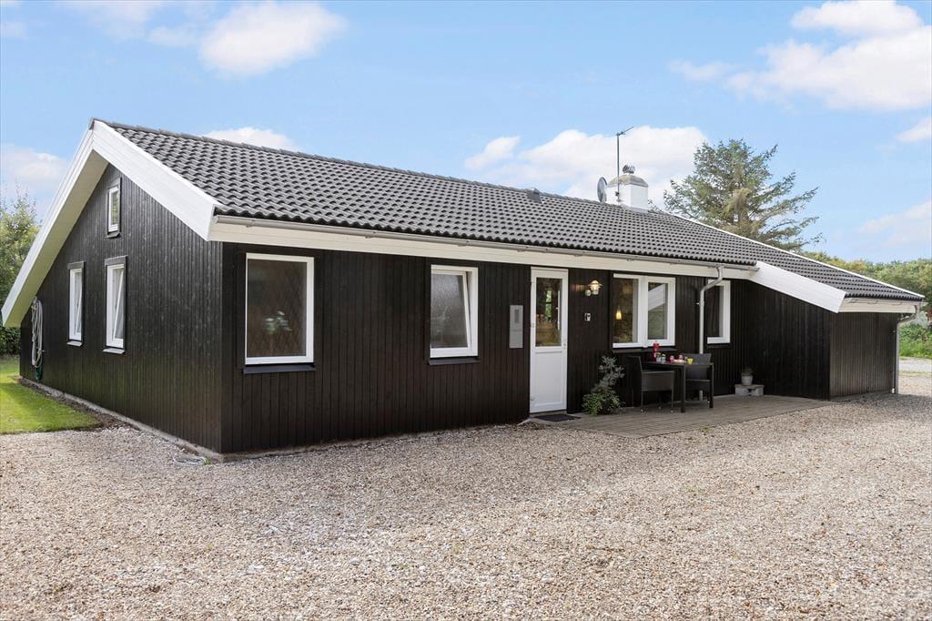 Dieses charmante Ferienhaus in der Hannesvej 24 bietet den perfekten Rahmen für einen Urlaub, bei dem Entspannung und Gemütlichkeit im Vordergrund stehen. Das Haus ist liebevoll eingerichtet, mit warmen Farben und durchdachten Details, die Ruhe und Nähe fördern. Draußen erwartet Sie ein wunderschöner Garten und mehrere Terrassen, sowohl offene als auch überdachte, auf denen Sie die Sonne genießen, ein gutes Buch lesen oder mit der Familie eine Mahlzeit unter freiem Himmel einnehmen können. Für Familien mit Kindern gibt es zusätzlich Freude, da nur 50 Meter vom Haus entfernt ein schöner Spielplatz liegt. Die Lage ist ideal – nur 250 Meter vom Strand entfernt – sodass Sie das Rauschen der Wellen hören und den Sand zwischen den Zehen spüren können, während Sie sich auf der Terrasse niederlassen.