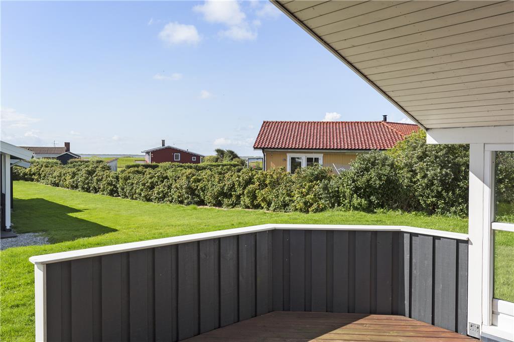 Das Ferienhaus liegt auf einem schönen Gartengrundstück mit guten Möglichkeiten zum Spielen mit oder ohne Ball. Das Ganze kann von der teilweise überdachten Südterrasse genossen und beobachtet werden, die Sie direkt vom Wohnbereich betreten. Vom Haus und der Terrasse haben Sie eine wunderbare Aussicht über die Landschaft und den Fjord. Auf der Terrasse stehen Gartenmöbel, Liegestühle, Grill und Sonnenschirm zur Verfügung.