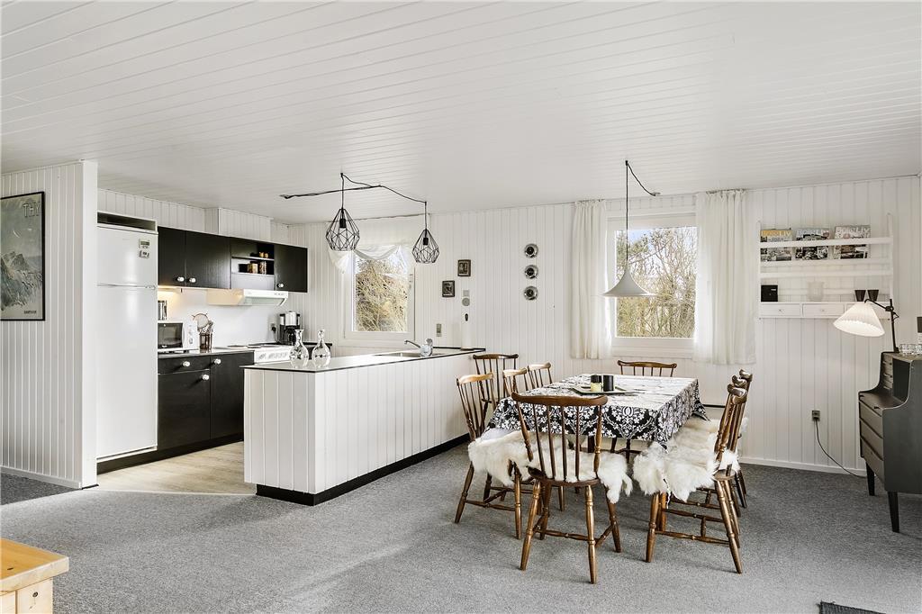 Dieses Ferienhaus befindet sich in einer der besten Lagen Kjærgaardens, nur 220 Meter von Fjord und Strand entfernt. An der Küste von Krik Vig erwarten Sie kinderfreundliche Strände mit ruhigem Wasser sowie eine kleine Badebrücke. Wenn Sie ein erfrischendes Bad in der Nordsee bevorzugen, empfehlen wir eine Fahrt nach Agger. Dort weht die “Blaue Flagge” am Strand, ein Zeichen für ausgezeichnete Wasserqualität. Zudem können Sie bis zur Agger Tange fahren, um im Naturschutzgebiet seltene Vögel zu beobachten – und mit etwas Glück auch die dort ansässige Seehundkolonie zu entdecken. Etwas weiter nördlich bietet sich Anglern der fischreiche Flade Sø an. Ebenso lohnt sich ein Besuch des beliebten Leuchtturmes von Lodbjerg, der Ihnen einen imposanten Ausblick über das Meer und die wilde Landschaft ringsum bietet.