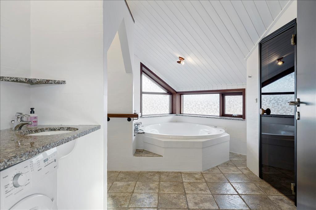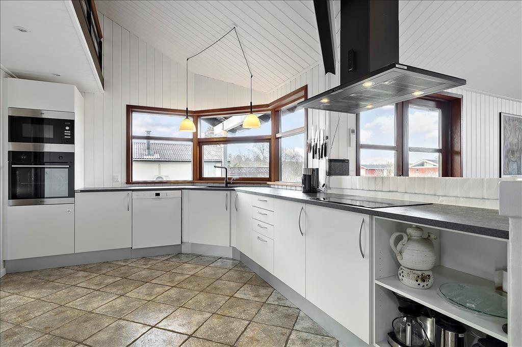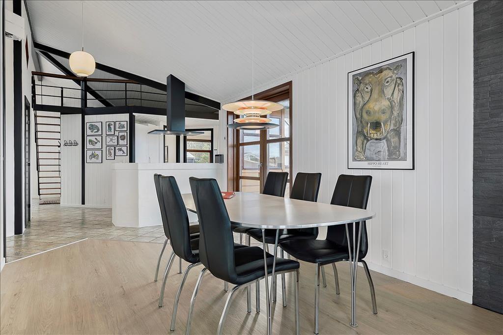 Das Ferienhaus ist architektonisch gestaltet und mit einem eleganten Fokus auf Licht und Luft eingerichtet. Große Fensterfronten schaffen eine helle Atmosphäre, in der die Natur fast Teil der Einrichtung wird. Im Wohnzimmer kannst du dich mit deinen Lieben vor dem Kamin versammeln und gemütliche Abende mit guten Gesprächen oder einem spannenden Buch verbringen. Die offene Küche, die nahtlos ins Wohnzimmer übergeht, macht es leicht, köstliche Mahlzeiten zuzubereiten, während die Familie in der Nähe zusammenkommt. Die Schlafzimmer sind mit einem Schwerpunkt auf Ruhe und Komfort gestaltet, sodass du erfrischt und bereit bist, die Umgebung zu erkunden.