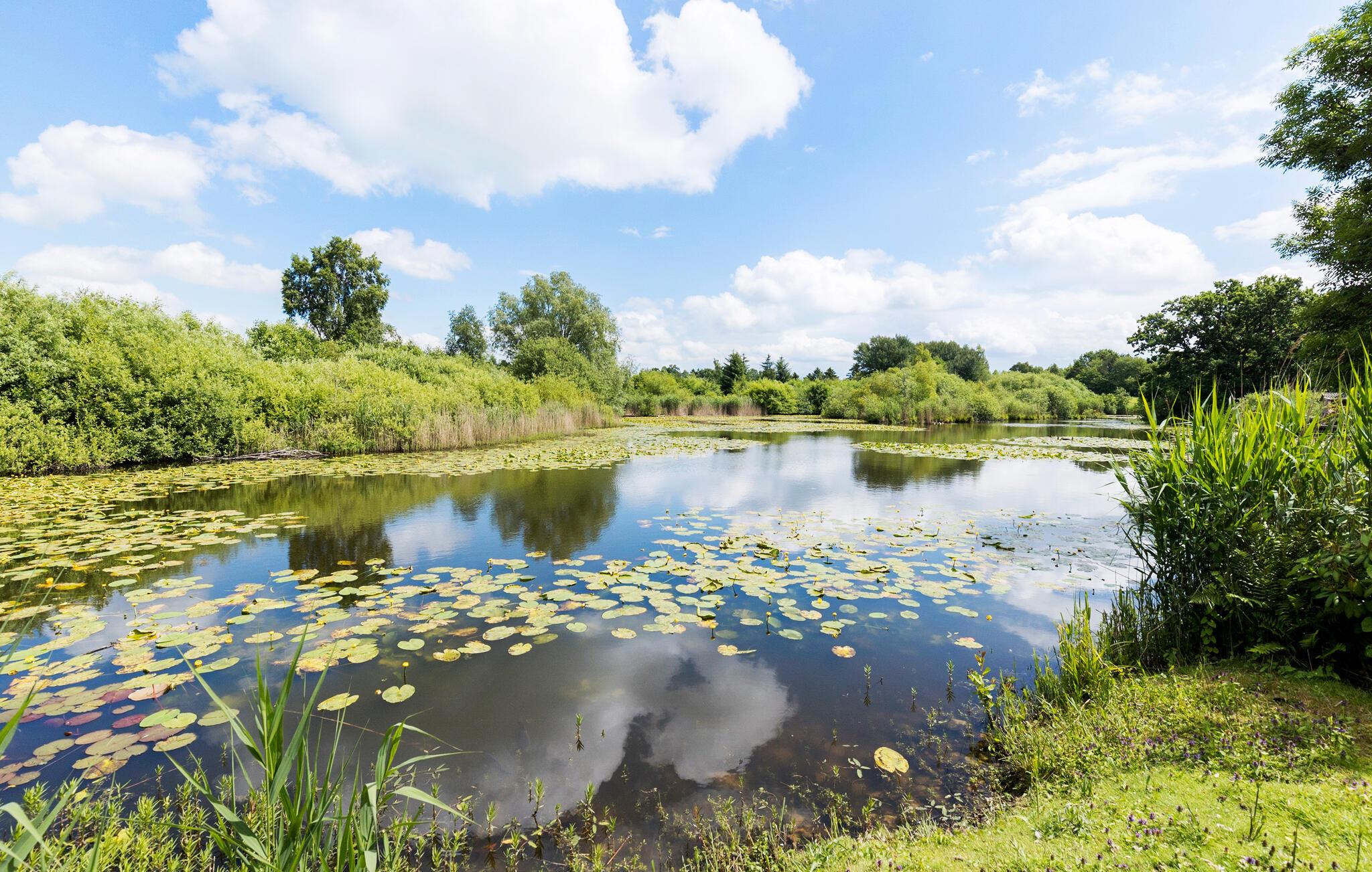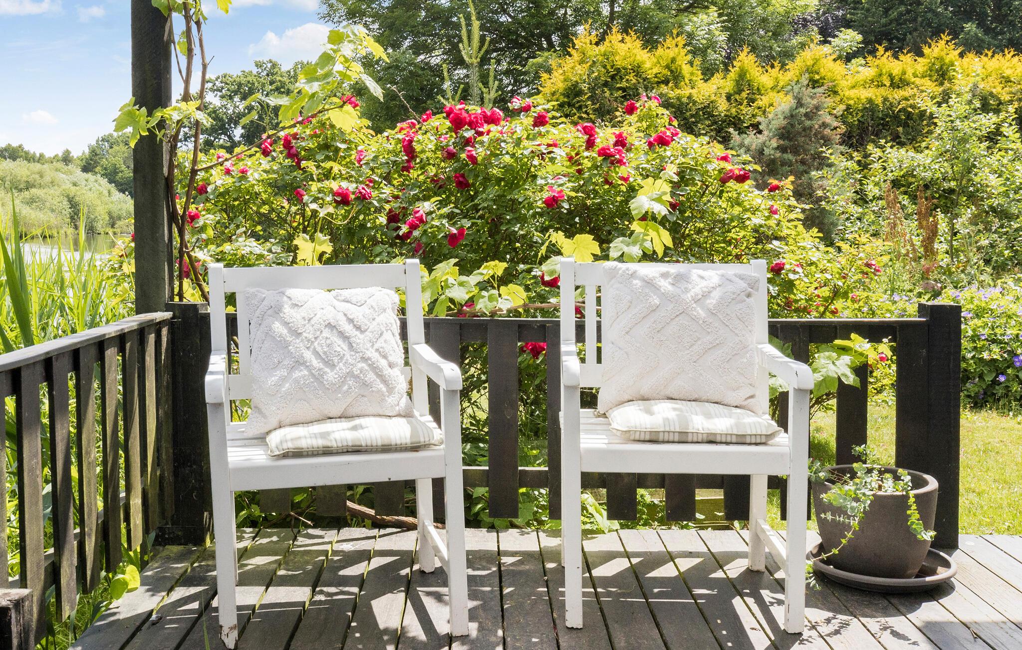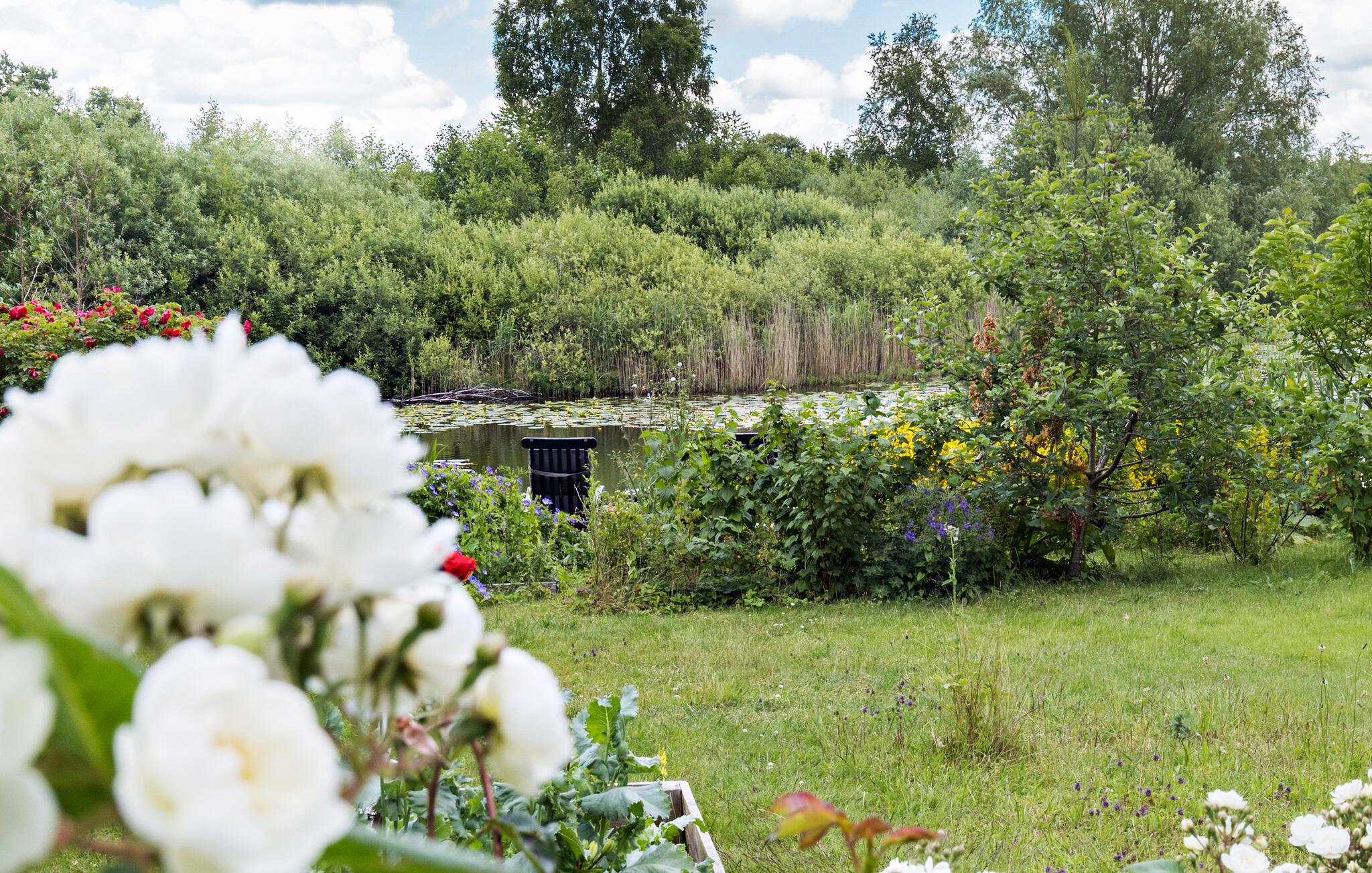 Nutzen Sie die großzügige, überdachte Terrasse für gesellige Grillabende. Lassen Sie den Blick über den weitläufigen Garten schweifen, während Sie die frische Luft und die Ruhe genießen. Für die kleinen Gäste bietet der Garten viel Platz zum Spielen und Toben. Besonders idyllisch ist der kleine See direkt neben dem Grundstück. Setzen Sie sich ans Ufer mit einer Tasse Kaffee oder Tee und genießen Sie die frische Luft und den schönen Blick auf das Wasser.