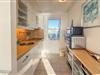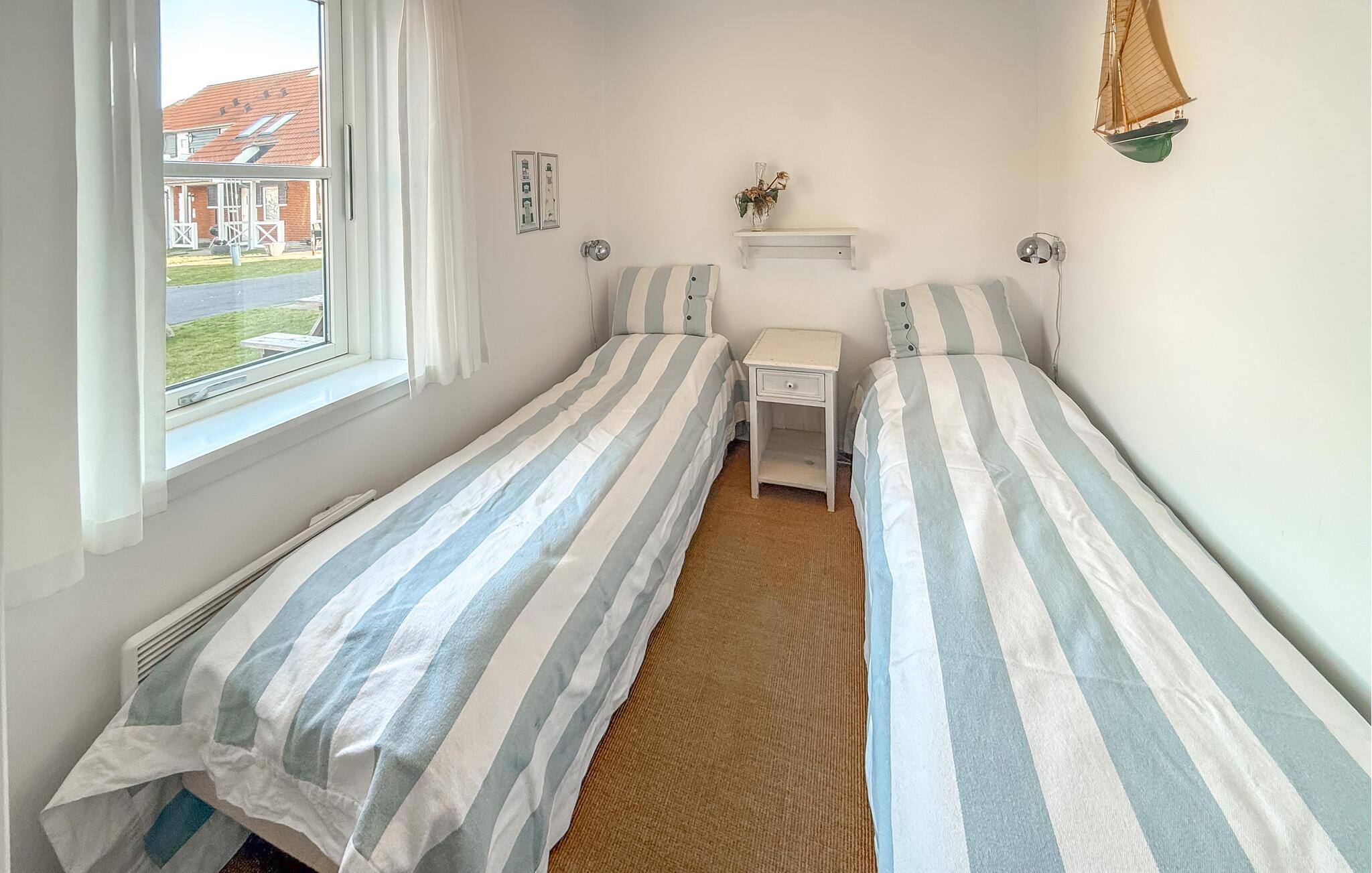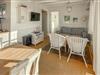 Treten Sie ein in den freundlich gestalteten Innenbereich, der maritimen Charme mit funktionaler Einrichtung verbindet. Nutzen Sie den offenen Wohn- und Essbereich mit bequemen Sitzmöbeln, hellem Holzboden und großen Fenstern zur Wasserseite. Bereiten Sie Speisen in der kompakten, aber praktischen Küche mit viel Arbeitsfläche zu. Genießen Sie den Blick nach draußen bereits beim Frühstück am Esstisch.