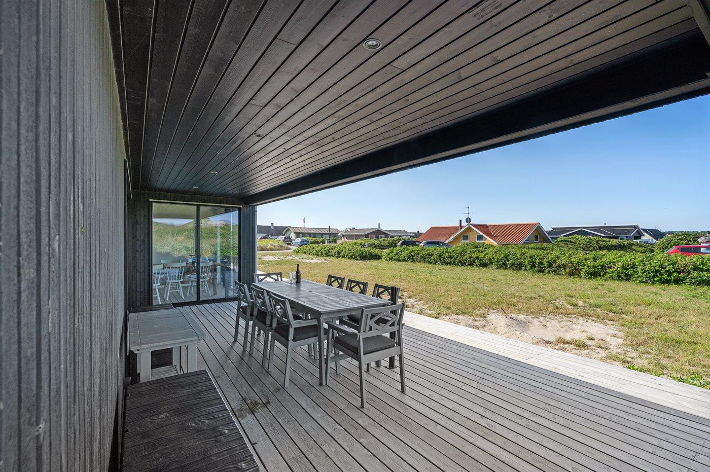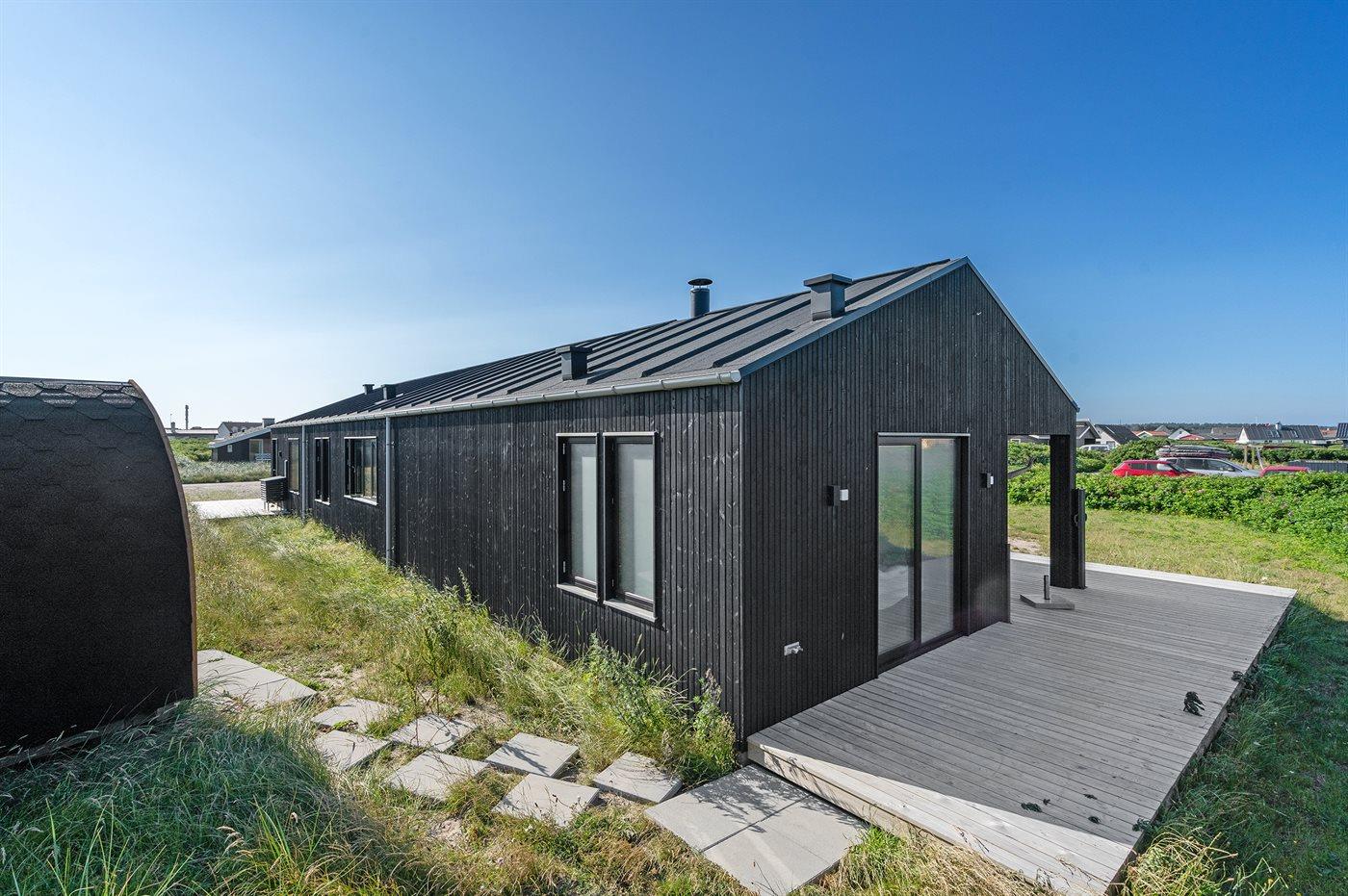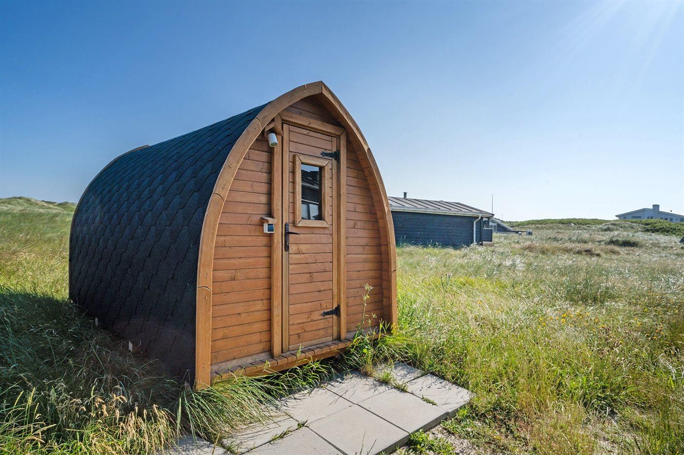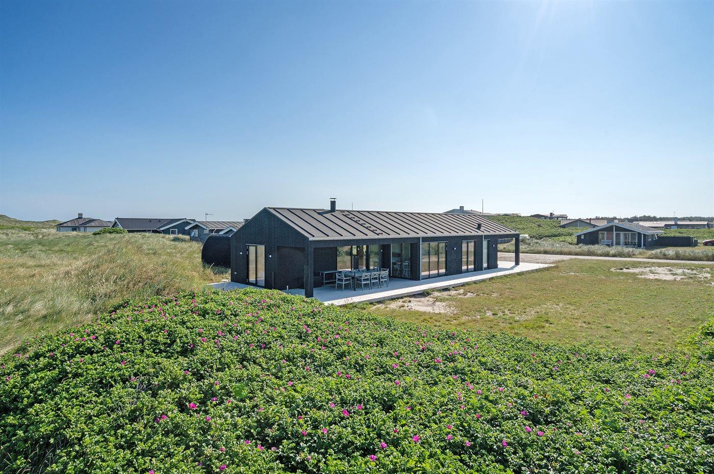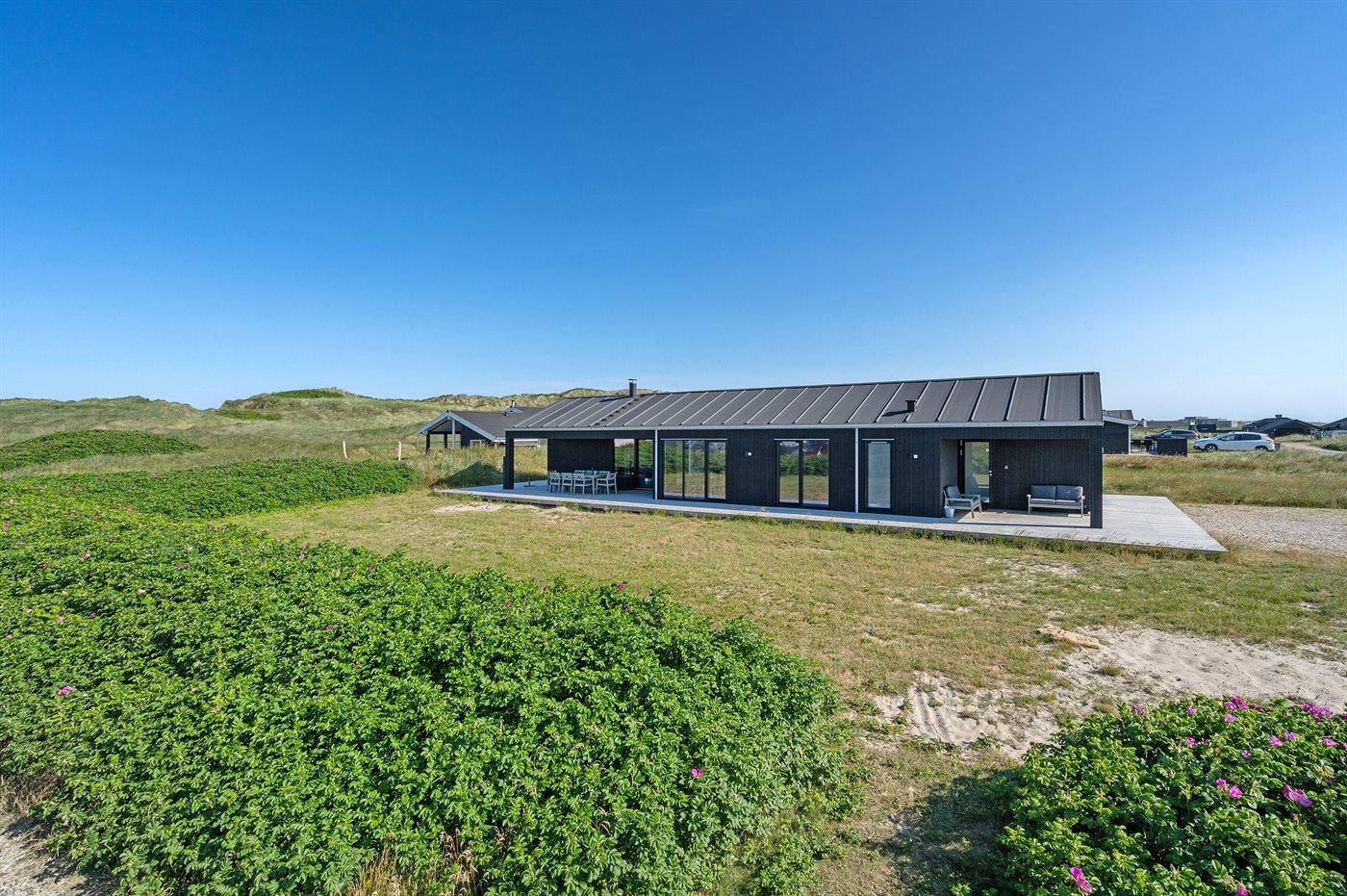 Die Ferienunterkunft liegt auf einem 1050 m² großen Dünengrundstück. Die Entfernung zum Meer beträgt 50 m. Die nächste Einkaufsmöglichkeit liegt 500 m entfernt. In einem Abstand von 4000 m gibt es einen Golfplatz. Es steht ein 122 m² Terrassenareal zur Verfügung. Außerdem gibt es 30 m² überdachte Terrasse. Geräteraum. Außensauna. Parkplatz auf dem Grundstück.