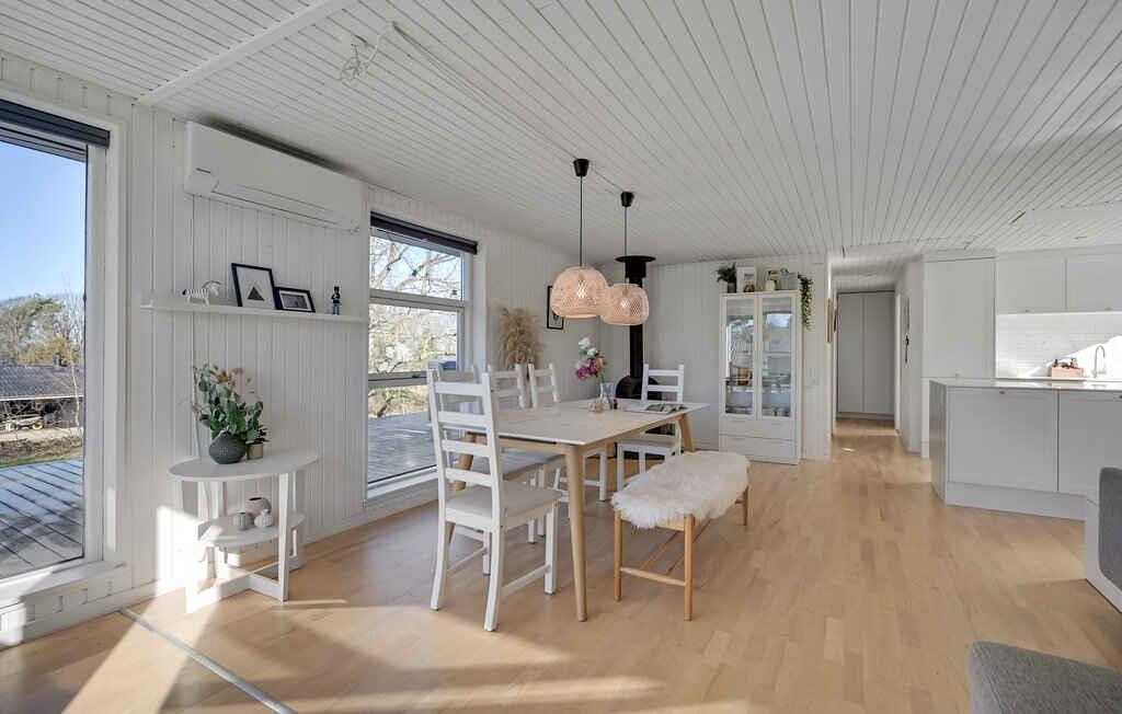 Ein helles und geschmackvoll renoviertes Ferienhaus mit 75 m², ruhig gelegen am Ende einer kleinen, privaten Sackgasse bei Dejret Klit. Hier genießen Sie Ruhe, Privatsphäre und den perfekten Rahmen für einen erholsamen Urlaub mit Natur, Nähe und gemeinsamer Zeit. Das Haus verfügt über 3 Schlafzimmer mit insgesamt 6 Schlafplätzen, ein Badezimmer sowie einen offenen Wohnbereich, in dem Wohnzimmer und Küche miteinander verbunden sind. Der Wohnraum ist der zentrale Treffpunkt des Hauses – ideal zum Essen, Spielen und Entspannen – mit direktem Zugang zur umlaufenden Terrasse. Küche und Bad präsentieren sich in hellen Materialien mit schönen Details, kombiniert mit stilvollen Fliesen. Im Außenbereich erwartet Sie ein grüner Garten mit Bäumen und Sträuchern, ein Trampolin für die Kinder sowie eine Rasenfläche zum Spielen und Entspannen. Genießen Sie lange Abende auf der Holzterrasse, entspannen Sie im Wildnisbad oder verbringen Sie eine Nacht im Shelter unter freiem Himmel. Die Umgebung eignet sich hervorragend für einen Urlaub in der Nähe von Wasser, Ebeltoft, Djurs Sommerland und der beeindruckenden Natur der Steilküsten. Ein kleiner Pfad führt Sie schnell zum Dejret Strand, wo Treppe und Badesteg den Einstieg ins Wasser erleichtern. Außerdem befinden Sie sich in der Nähe eines schönen Sandstrandes – ideal zum Baden und für Spaziergänge am Meer. Besuchen Sie den Yachthafen von Skødshoved mit Restaurant und gemütlichem Eisstand und genießen Sie die maritime Atmosphäre. Einkaufsmöglichkeiten finden Sie bequem 2 km entfernt in Tved (Super Brugsen ist ganzjährig täglich von 8–20 Uhr geöffnet). Die Mols Bjerge sind ebenfalls gut erreichbar – perfekt zum Wandern, Radfahren oder um einfach die Aussicht zu genießen. 10 Erlebnisse in kurzer Entfernung Mols Bjerge mit MTB-Strecken, Wanderwegen, Tierwelt und Natur (10 Min.) Ebeltoft mit Einkaufsmöglichkeiten, Cafés und der Fregatte Jylland (25 Min.) Djurs Sommerland (40 Min.) Stadtleben, ARoS, Bruuns Galleri, Salling Rooftop und Kultur in Aarhus (50 Min.) 3 hervorragende Golfplätze (15–40 Min.) Schlossruine Kalø Vig mit Eisstand und kleinem Badestrand (20 Min.) Skandinavisk Dyrepark und Ree Park (40 Min.) Skødshoved Strand mit Eisstand und Sommeratmosphäre (2 km) Lokale Brauerei in Dejret – lernen Sie Bier zu brauen (3 km) Fuglsø Centret mit Konzerten und Veranstaltungen das ganze Jahr über Achtung: Wird nicht für gewerbliche Nutzung vermietet.