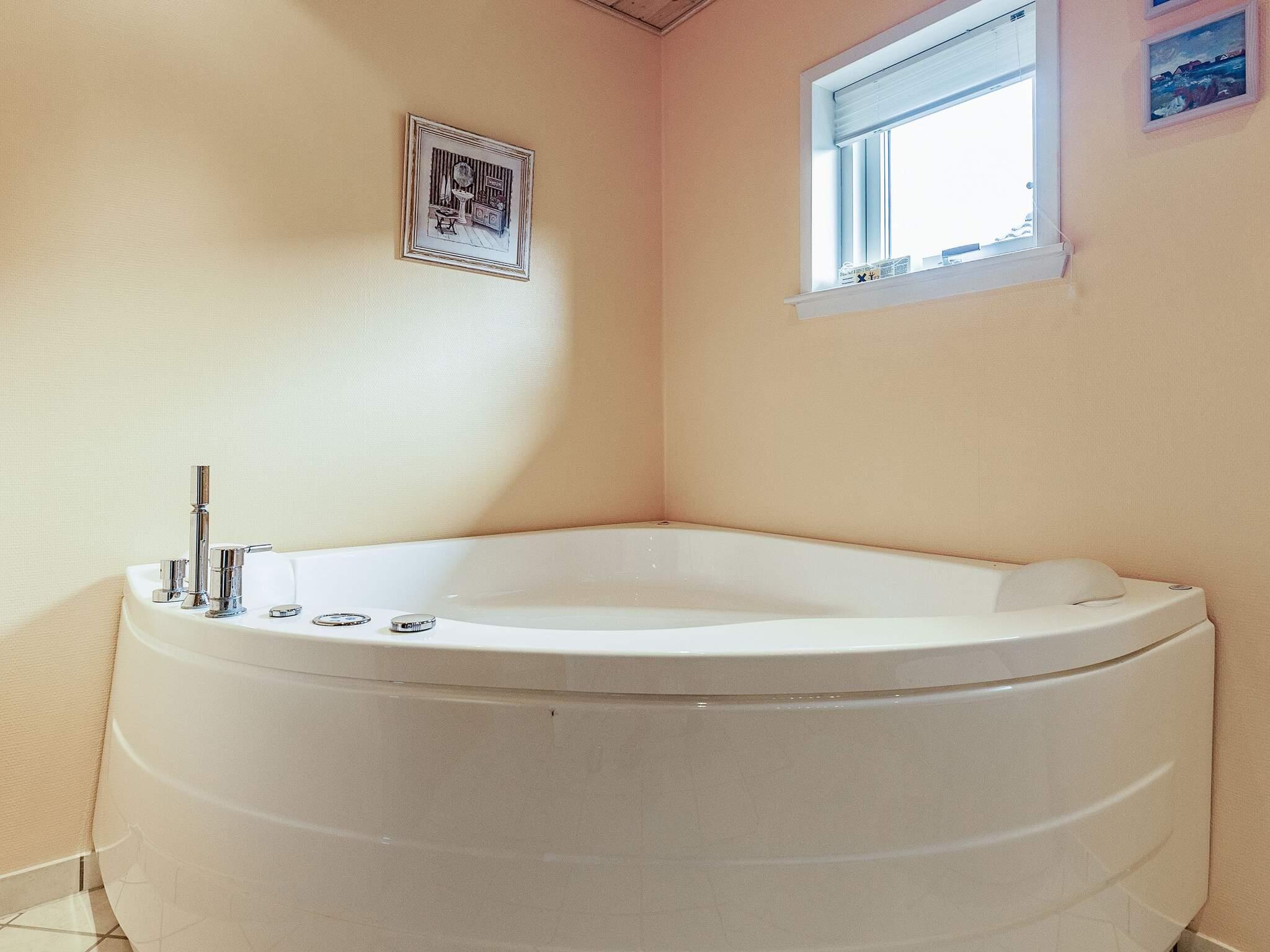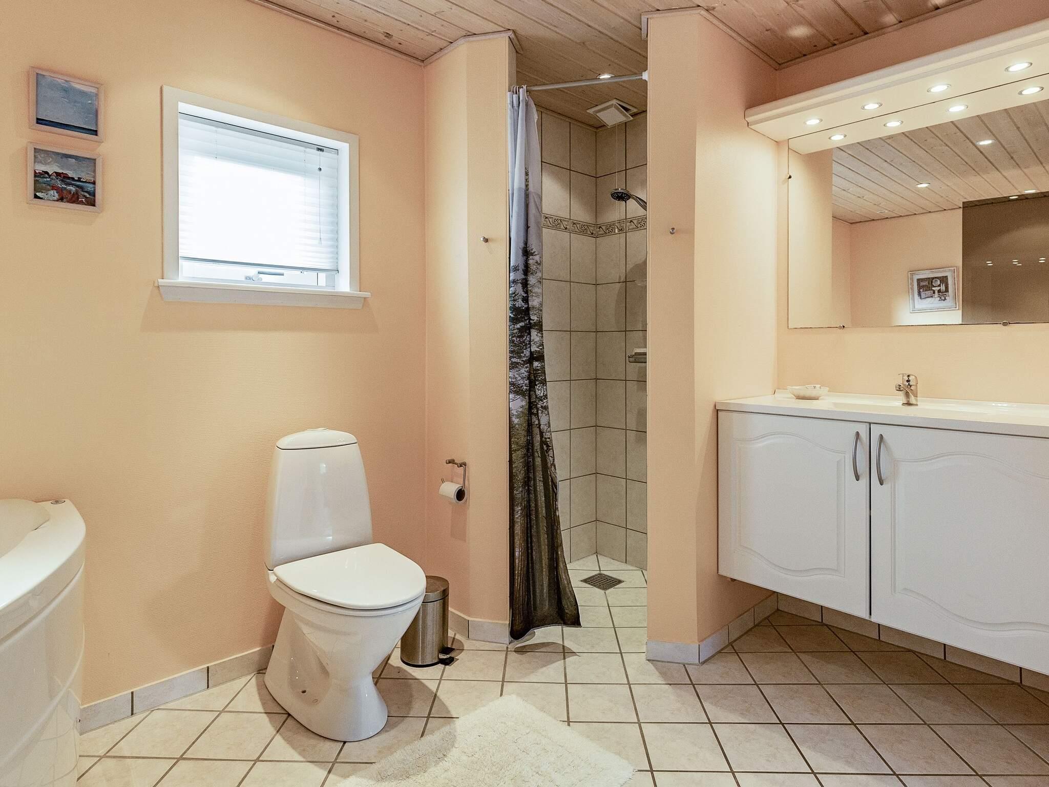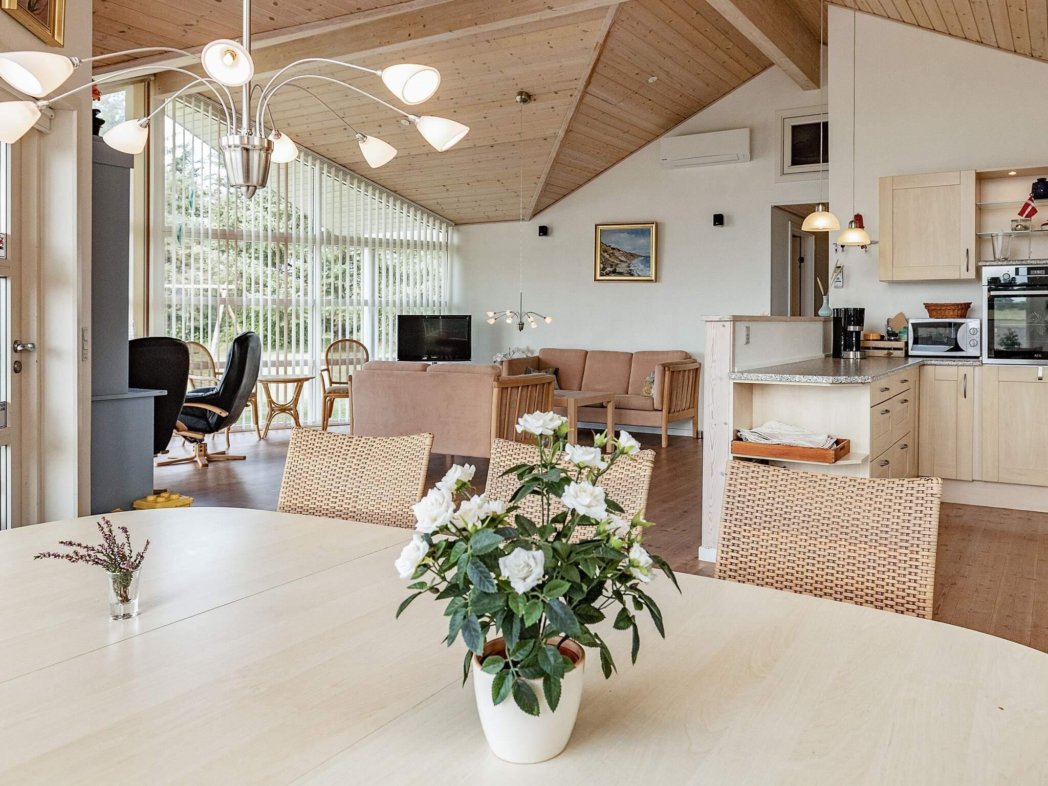 Das Ferienhaus hat einen offenen Küchen-/Wohnbereich für das Familienleben, gut ausgestattet mit u.a. Ceranfeld, Abzugshaube und Geschirrspüler. Es gibt drei Schlafzimmer mit je einem Doppelbett sowie einen Hems oben unter der Dachschräge mit zwei weiteren Schlafplätzen. Zudem Kinderbett vorhanden. Im größeren Badezimmer erwarten Sie ein Whirlpool und Zugang zu einer Sauna für entspannende Stunden. Außerdem praktisches Gäste-WC im Haus.