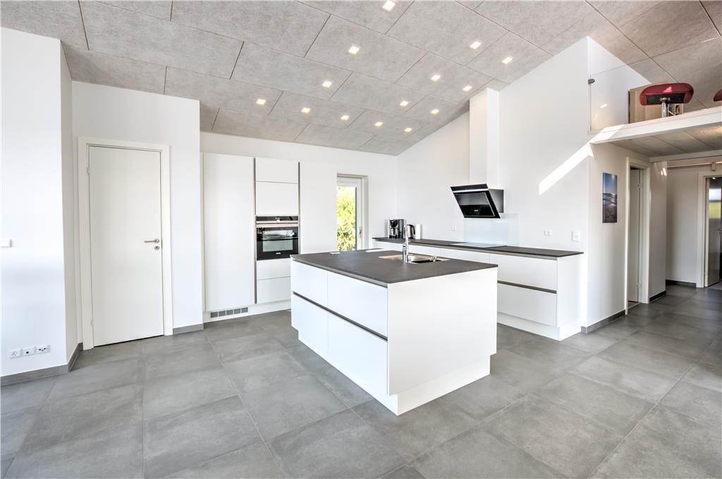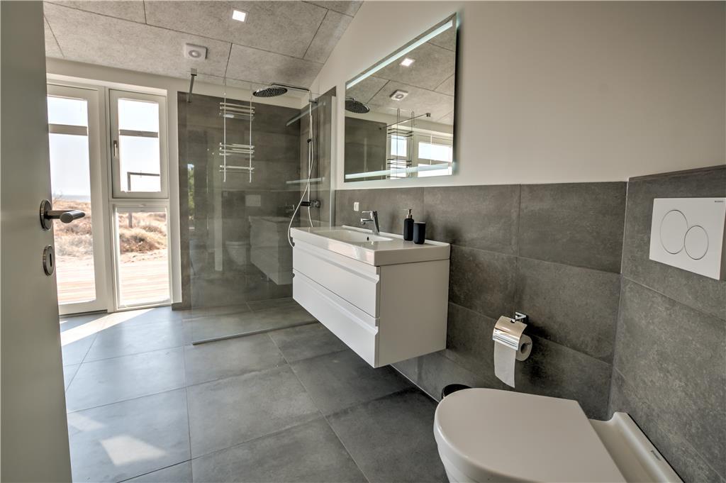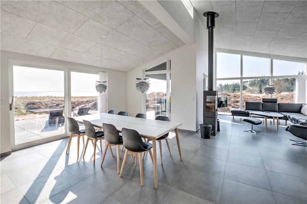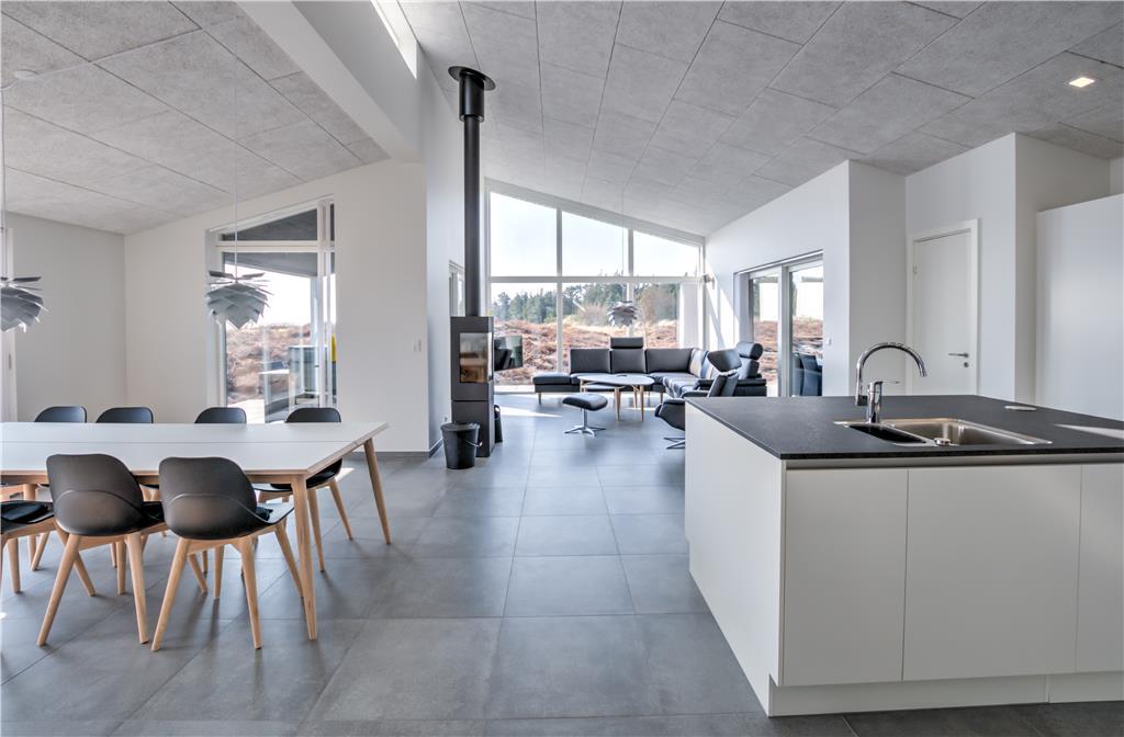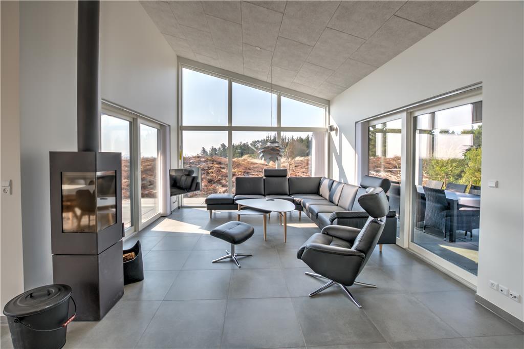 Schon ein kurzer Blick auf die moderne Architektur zeigt, dass das Ferienhaus besonders ist. Dies zeigt sich auch im Innenbereich, wo jeder einzelne der 150 m² des Hauses mit offenem Raumfluss, großen Fenstern und einer beeindruckenden Deckenhöhe elegant eingerichtet ist. Die stilvolle Einrichtung wurde sorgfältig ausgewählt, sodass das Urlaubsleben drinnen äußerst komfortabel ist. So wird es dir zum Beispiel im Wohnzimmer an nichts fehlen, in welches die Küche integriert ist. Hier kannst du kochen, köstliche Mahlzeiten genießen und auf dem Sofa am Holzofen entspannen, während das Sonos-Soundsystem für schöne Musik sorgt – und egal, wo du dich aufhältst, das Wattenmeer ist die wunderschöne Kulisse für die Urlaubsaktivitäten. Wenn du einen guten Film sehen willst, sind Apple TV und Chromecast die perfekten Geräte. Vom Wohnzimmer aus gibt es eine offene Verbindung zu einem Dachboden, der in zwei Bereiche unterteilt ist: Eine Spielecke mit Kissen und Fernseher ist hauptsächlich für Kinder gedacht, während Erwachsene die Leseecke zu schätzen wissen, die eine kleine Bibliothek, einen Sessel und einen schönen Blick in die Natur über das Wohnzimmer bietet. Der Grundriss bietet dir neben dem Wohnbereich eine Eingangshalle mit Waschküche sowie zwei Badezimmer und vier Schlafzimmer mit insgesamt acht Betten. In den beiden Schlafzimmern mit Einzelbetten können die Betten zu einem Doppelbett zusammengeschoben werden. Alle Räume werden mit Fußbodenheizung beheizt, und besonders die Badezimmer verdienen ein paar extra Worte, denn sie sind beide besonders extravagant. Als raffiniertes Detail kannst du sogar den Wattenmeerblick genießen, wenn du dich in einem der Badezimmer, im Whirlpool oder in der Sauna entspannst.
