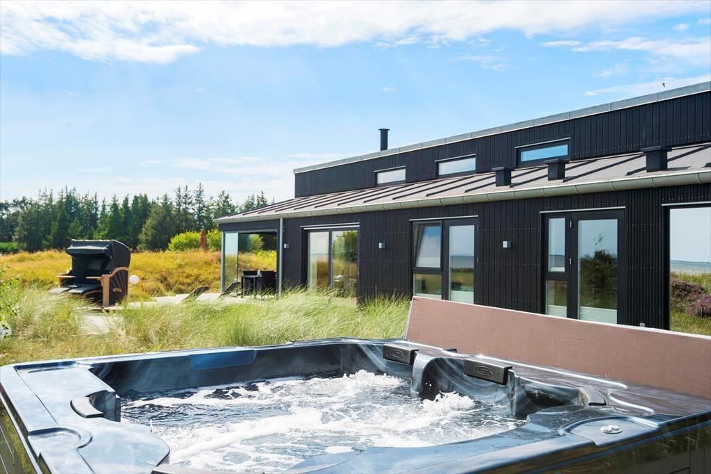Dieses elegante, hochwertige Sommerhaus in Kromose ist wie für einen unvergesslichen Urlaub gemacht. Hier kannst du das Leben genießen. Das schöne Ferienhaus aus dem Jahr 2018 liegt in erster Reihe am Wattenmeer, und der Meerblick kann vom Wohnzimmer, der Terrasse und sogar vom Whirlpool und der Sauna in einem der Badezimmer genossen werden. Mit anderen Worten, sowohl die Lage als auch das Interieur sind, gelinde gesagt, in Sonderklasse.