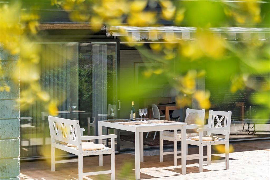 Der schöne Garten verzückt mit Stockrosen, die an den Mauern des Hauses empor wachsen. Somit werden Sie schon bei Ihrer ersten Ankunft am Haus mit einer perfekten Urlaubsstimmung empfangen. Die Terrasse ist gemütlich und gut abgeschirmt. Gute Gartenmöbel laden zu traumhaft erholsamen Momenten und schönen Essen unter dem hohen, nordischen Himmel ein. Auf den Liegestühlen können Sie sich nach Herzenslust von der Sonne verwöhnen lassen.