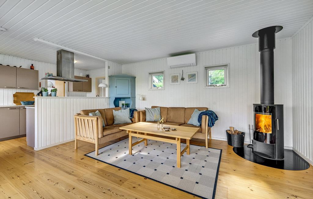 Modernes Ferienhaus auf Langeland mit Kaminofen, WLAN und kinderfreundlichem Strand in der Nähe.