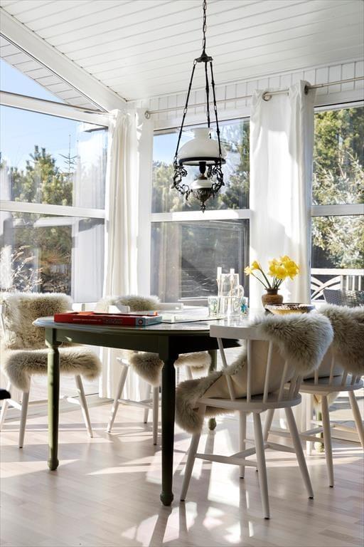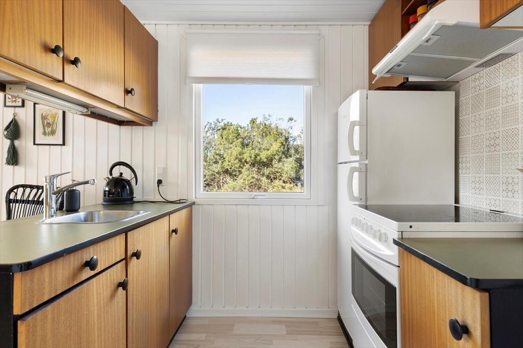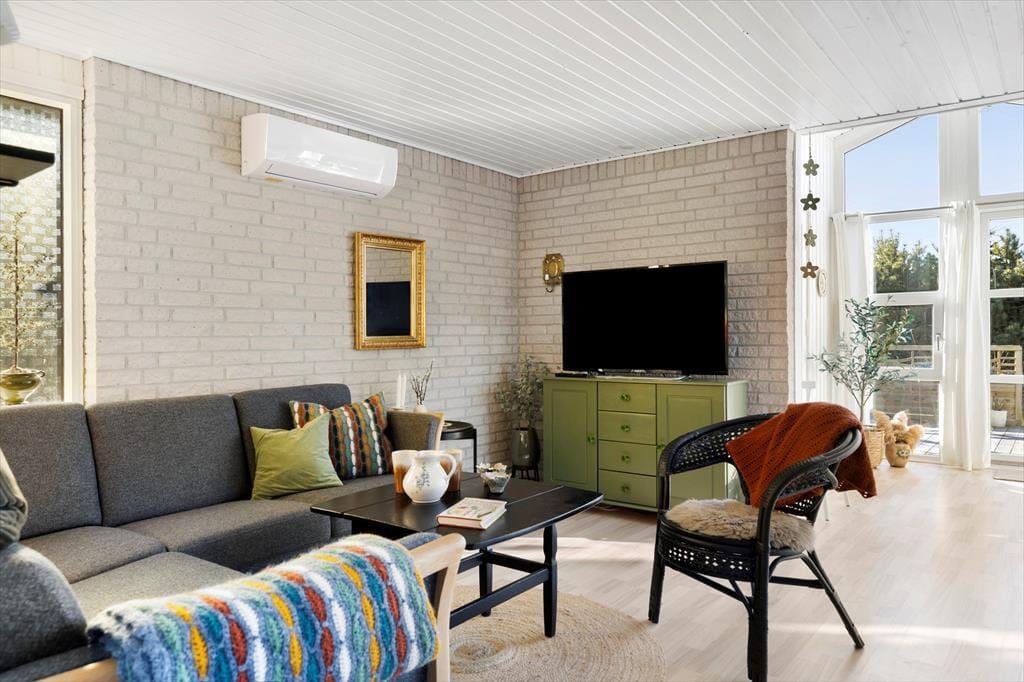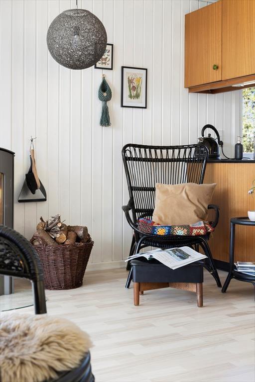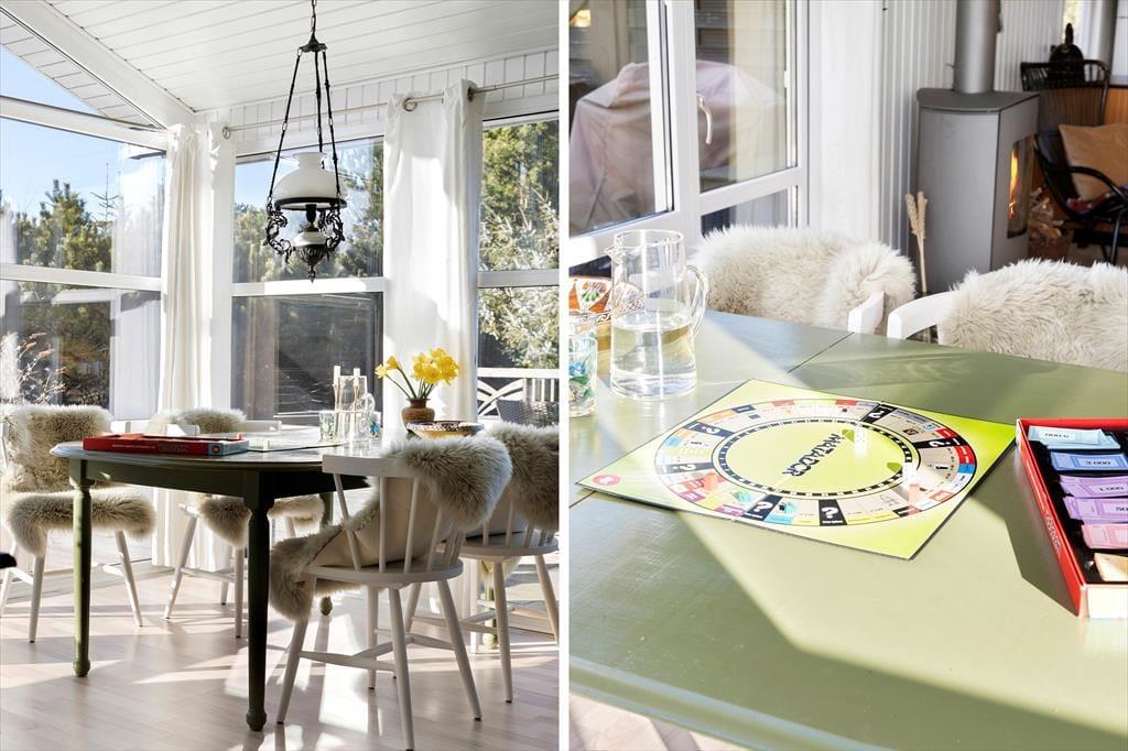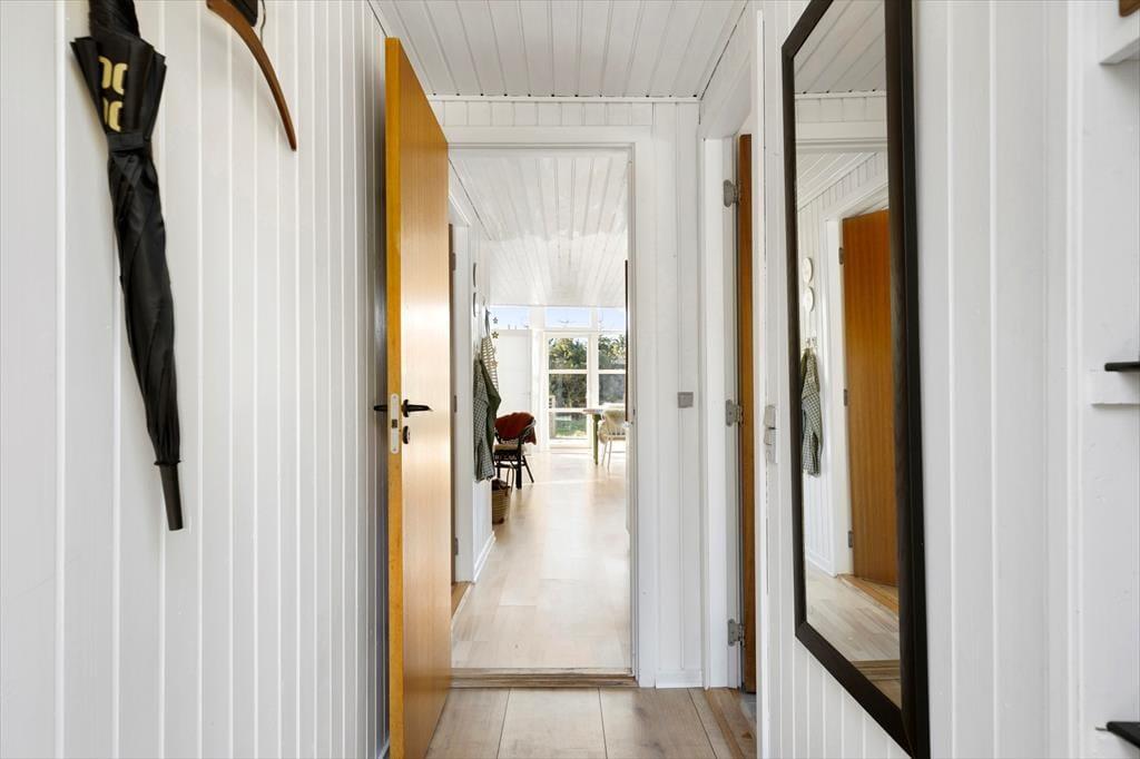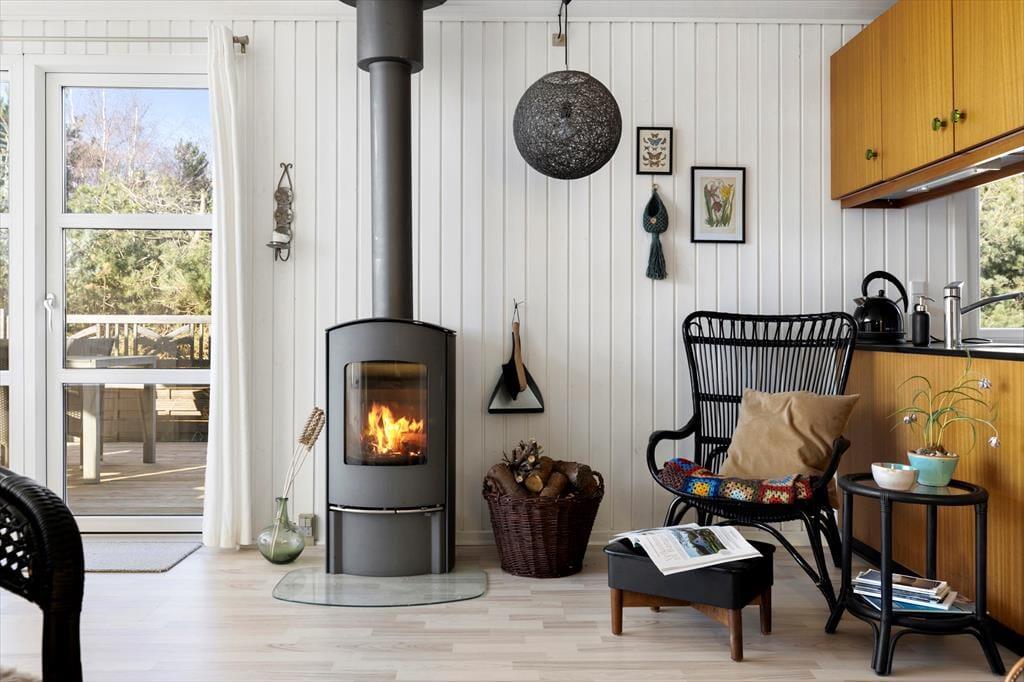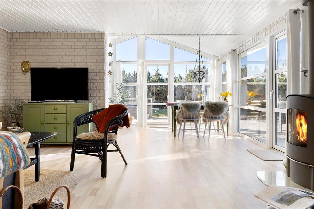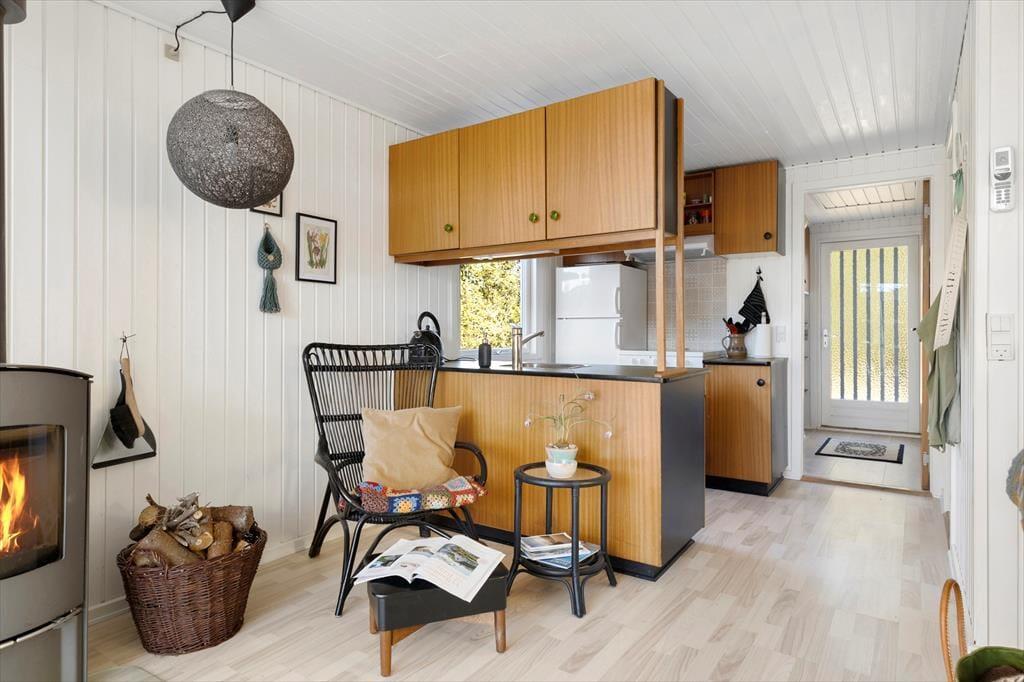 Das Ferienhaus ist in einem warmen und persönlichen Stil eingerichtet, so dass Sie sich schnell wie zu Hause fühlen werden. Die Möbel sind bequem und die feinen Details in der Einrichtung - von der Kunst an den Wänden bis zu den Nippsachen und Textilien - schaffen eine entspannte Atmosphäre mit hohen Decken, sowohl physisch als auch psychisch. Der offene Wohnbereich ist das Herzstück des Hauses, wo Küche, Essbereich und Wohnzimmer ineinander übergehen und zu Gesprächen, gemeinsamem Kochen und einem gemütlichen Morgen mit frisch gebrühtem Kaffee und Brot aus der Bäckerei in Sæby einladen. Wenn sich der Tag dem Ende zuneigt, kann man es sich auf dem Sofa gemütlich machen, während der Hund in der Ecke schlummert und die Sonne ihre letzten Strahlen durch die Fenster wirft. Das Ferienhaus strahlt alltäglichen Luxus und echte Sommeratmosphäre aus - da vergisst man leicht Zeit und Ort.