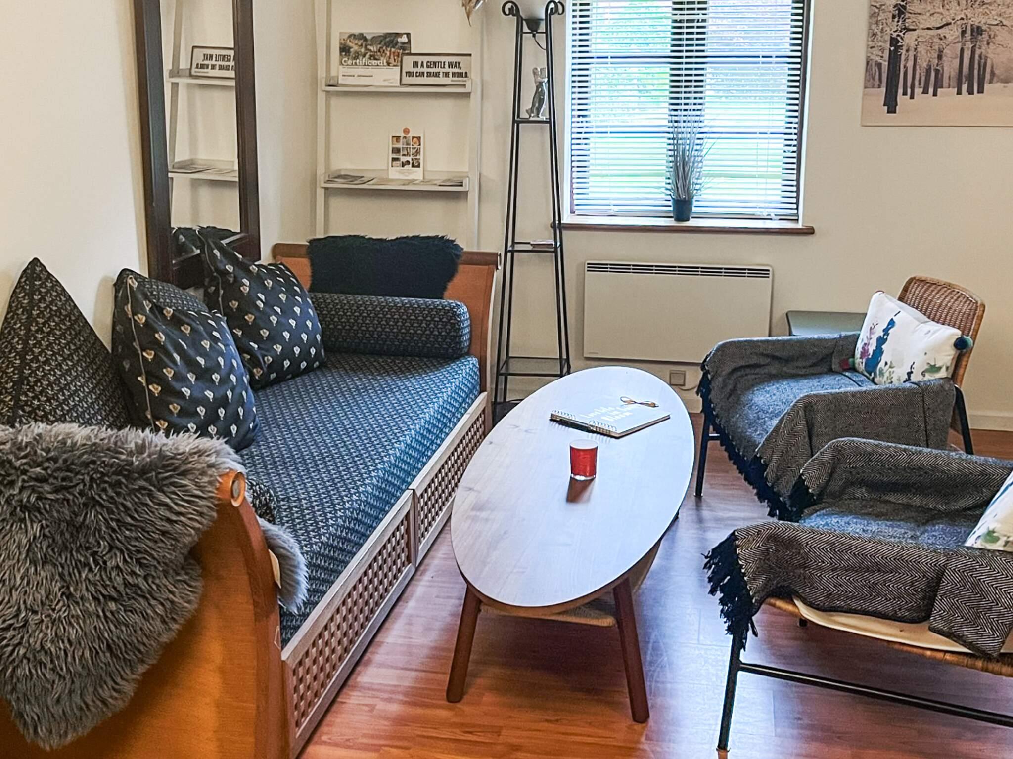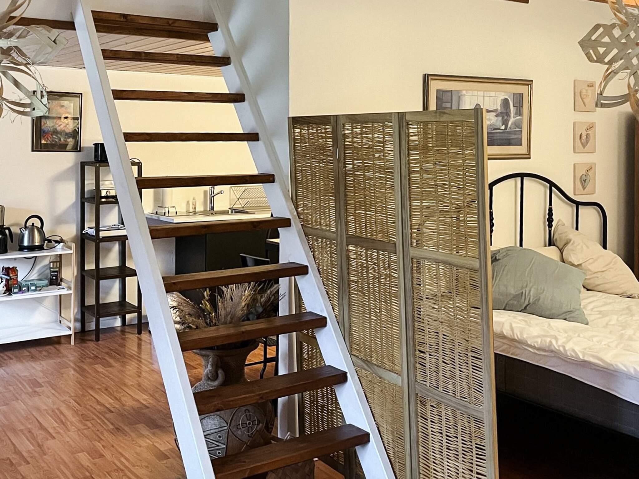 Der Anbau ist hell und geräumig und besteht aus einer Eingangsdiele, einem großen, offenen Raum mit einer größeren Küchenzeile mit u.a. Heißluftfritteuse in einem Bereich und einem Wohnzimmer und einem Doppelbett im anderen. Vom Wohnzimmer führt eine Treppe hinauf zum Dachboden/Hems. Beachten Sie bitte, dass der Dachboden offen ist, was ihn perfekt macht, wenn Sie sich etwas zurückziehen möchten, aber dennoch Teil des offenen Raums darunter sein möchten.