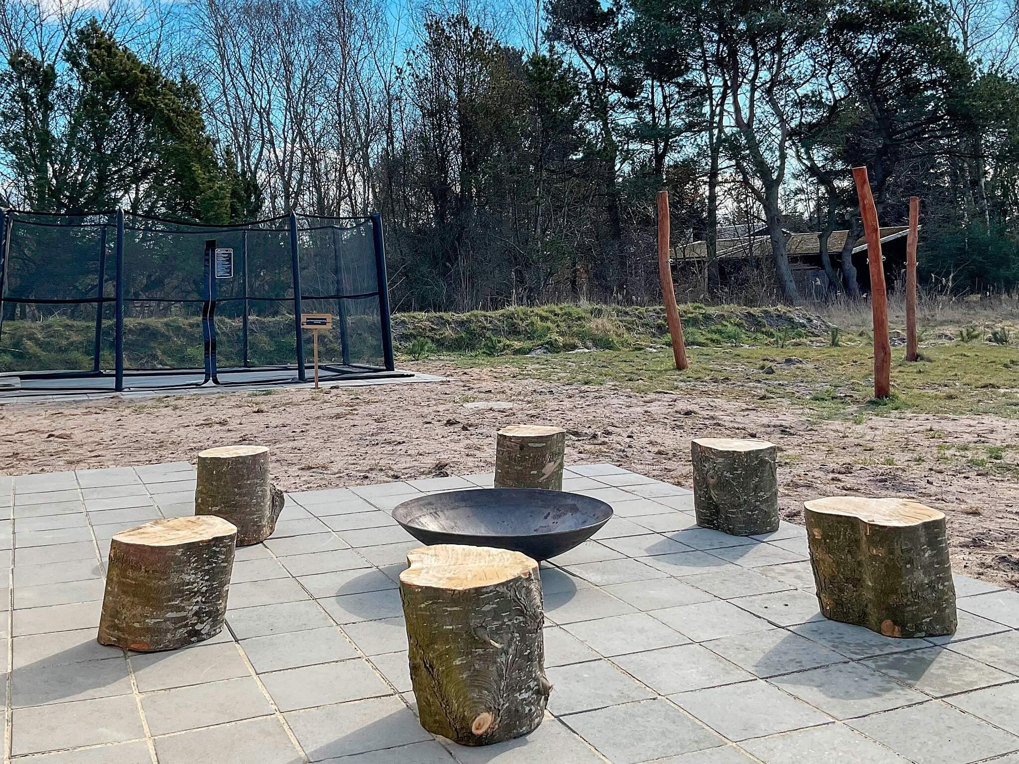 Schöne Terrassenfläche rund um das Haus mit Windschutz, Schatten oder auch der Möglichkeit, im Badezuber mit bis zu 6 Personen zu entspannen. Auf dem Rasen davor gibt es viel Platz für Ballspiele o.Ä. Zudem Gartentrampolin (Nutzung nur auf eigenes Risiko) sowie vier Hängekojen im Außenbereich.