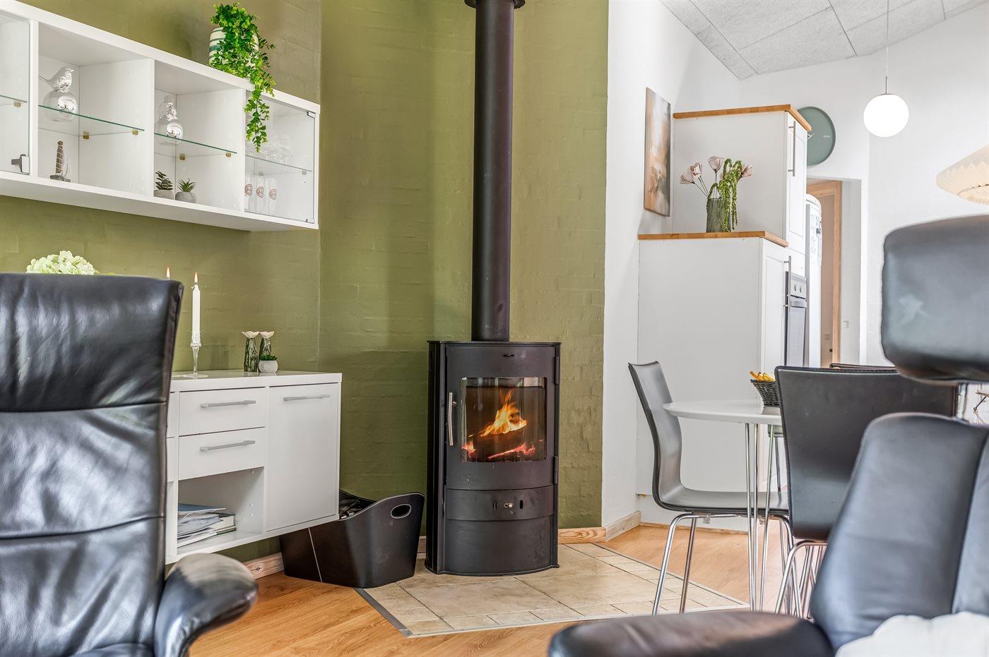 Helles Ferienhaus in Sæby mit Kamin, Terrasse und nur 200 m zum Meer, ideal für Familien und Naturfreunde.