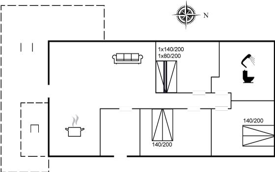Das Ferienhaus eignet sich für 8 Personen sowie 1 Kleinkind bis zu 3 Jahren. 2 der Schlafplätze eignen sich jedoch nur für größere Kinder (4-11 Jahre). Die Ferienunterkunft hat eine Wohnfläche von 109 m² und wurde 2006 gebaut. Haustiere dürfen nicht mitgebracht werden. Die Ferienunterkunft ist mit energiesparender Wärmepumpe ausgestattet. Die Ferienunterkunft ist mit Waschmaschine ausgestattet. Wäschetrockner. Tiefkühlmöglichkeit mit 60 Liter Nutzinhalt. Es gibt außerdem einen Kaminofen. Für die jüngsten Feriengäste ist 1 Kinderhochstuhl vorhanden.