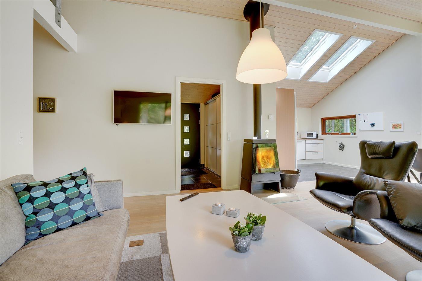 Schönes Ferienhaus mit viel Platz außerhalb des kleinen Orts Voerså. Ungestörte Lage auf einem sehr großen Grundstück mit vielen hohen Bäumen. Das gut ausgestattete Haus verfügt über ein offenes Obergeschoss, in dem sich 2 Schlafplätze befinden.