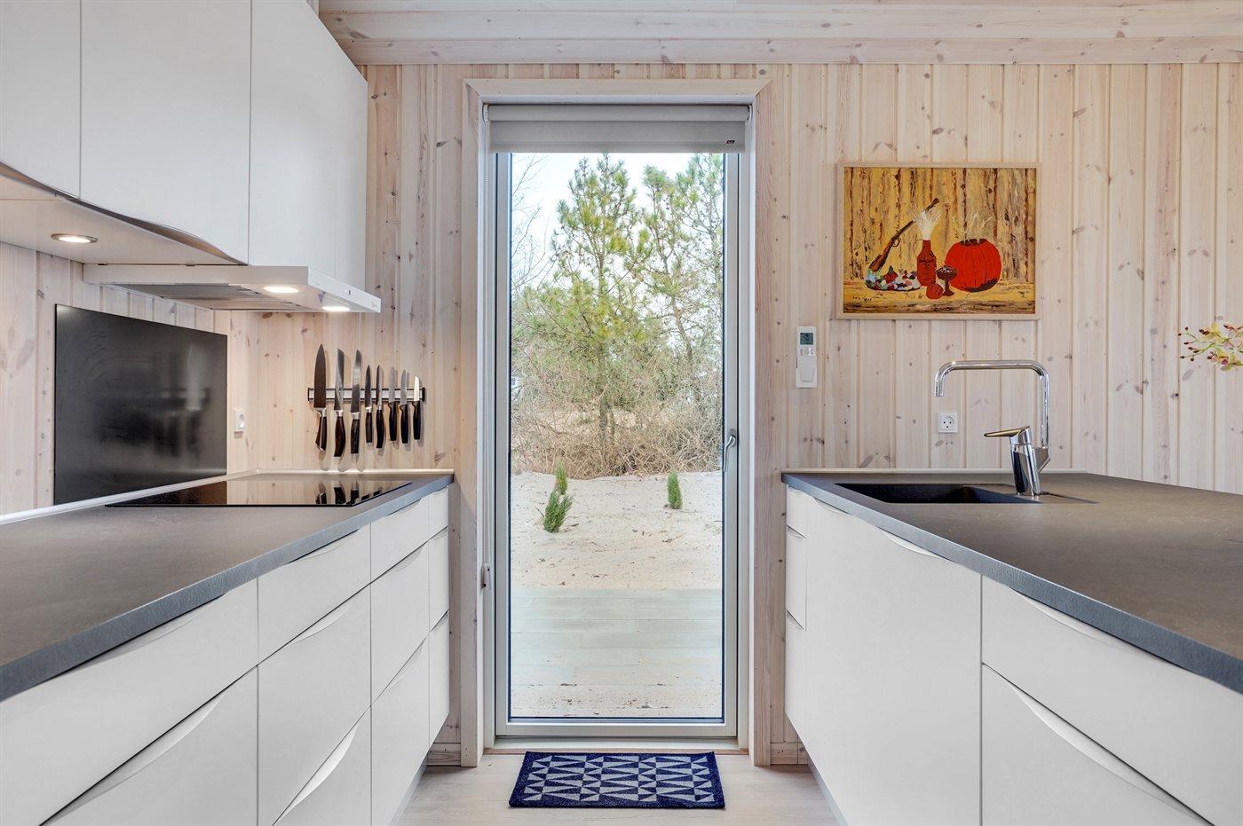 Die Küche ist mit Kühlschrank ausgestattet (311L). Außerdem gibt es 4 Induktions-Kochzonen, Umluftofen, Mikrowelle sowie Geschirrspüler.