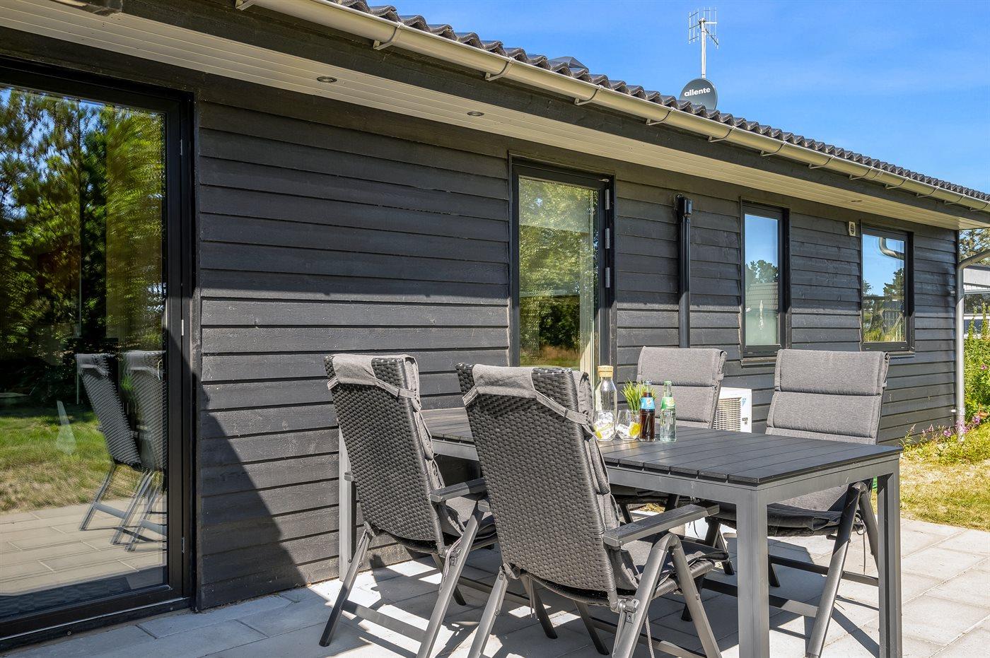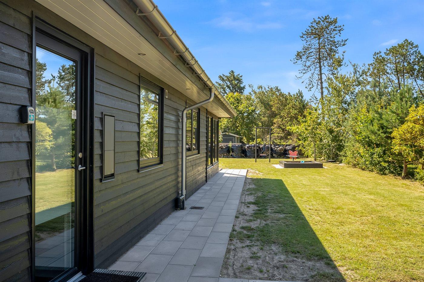 Die Ferienunterkunft liegt auf einem 835 m² großen Naturgrundstück. Die Entfernung zum Meer beträgt 225 m. Die nächste Einkaufsmöglichkeit liegt 5000 m entfernt. Außerdem gibt es 24 m² überdachte Terrasse. Es steht ein offenes Terrassenareal zur Verfügung. Geräteraum. Schaukel. Sandkasten.Wippe. Es steht ein Grill zur Verfügung. Es ist ein Ladestecker für Elektroautos installiert. Parkplatz auf dem Grundstück.