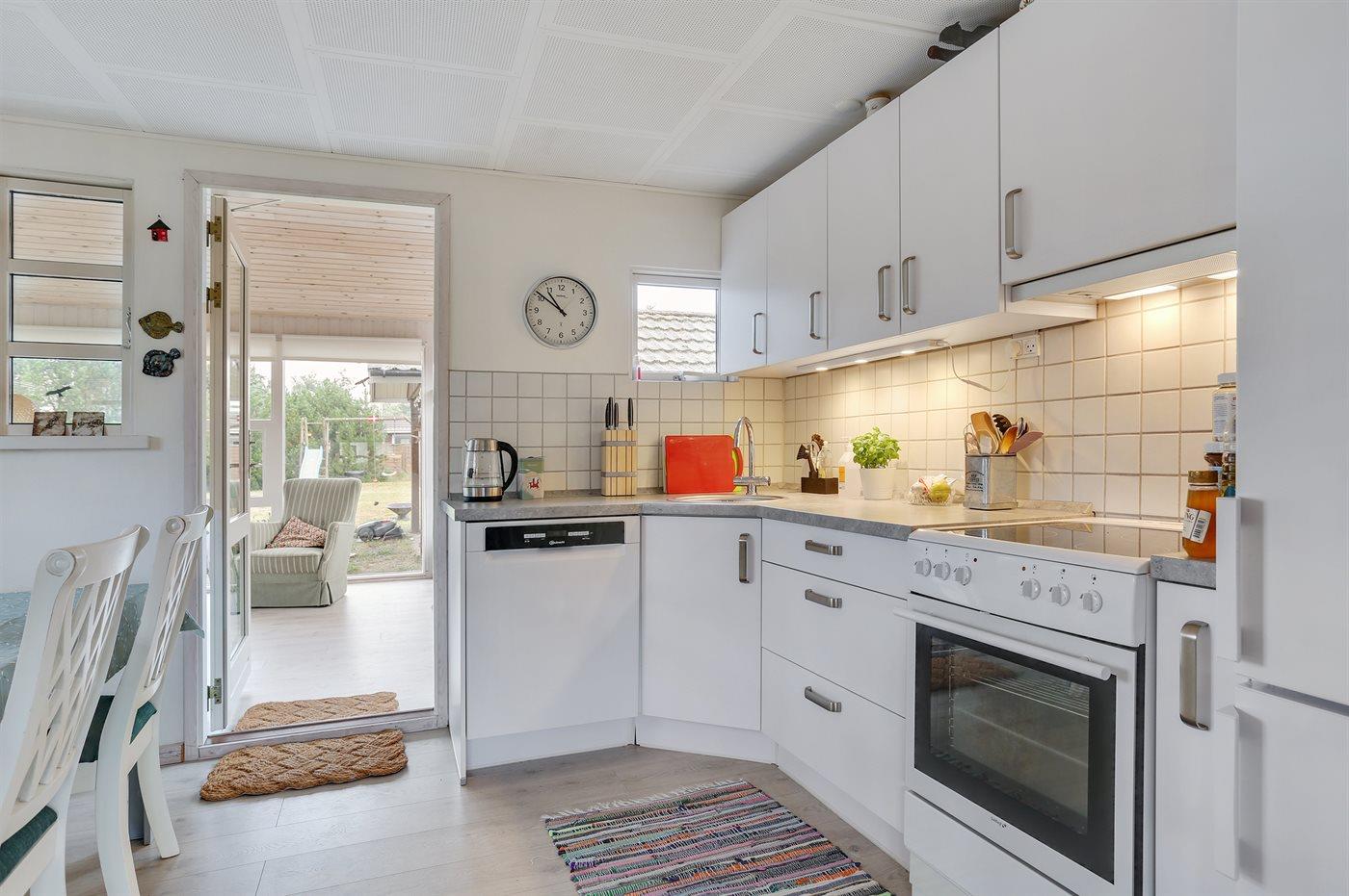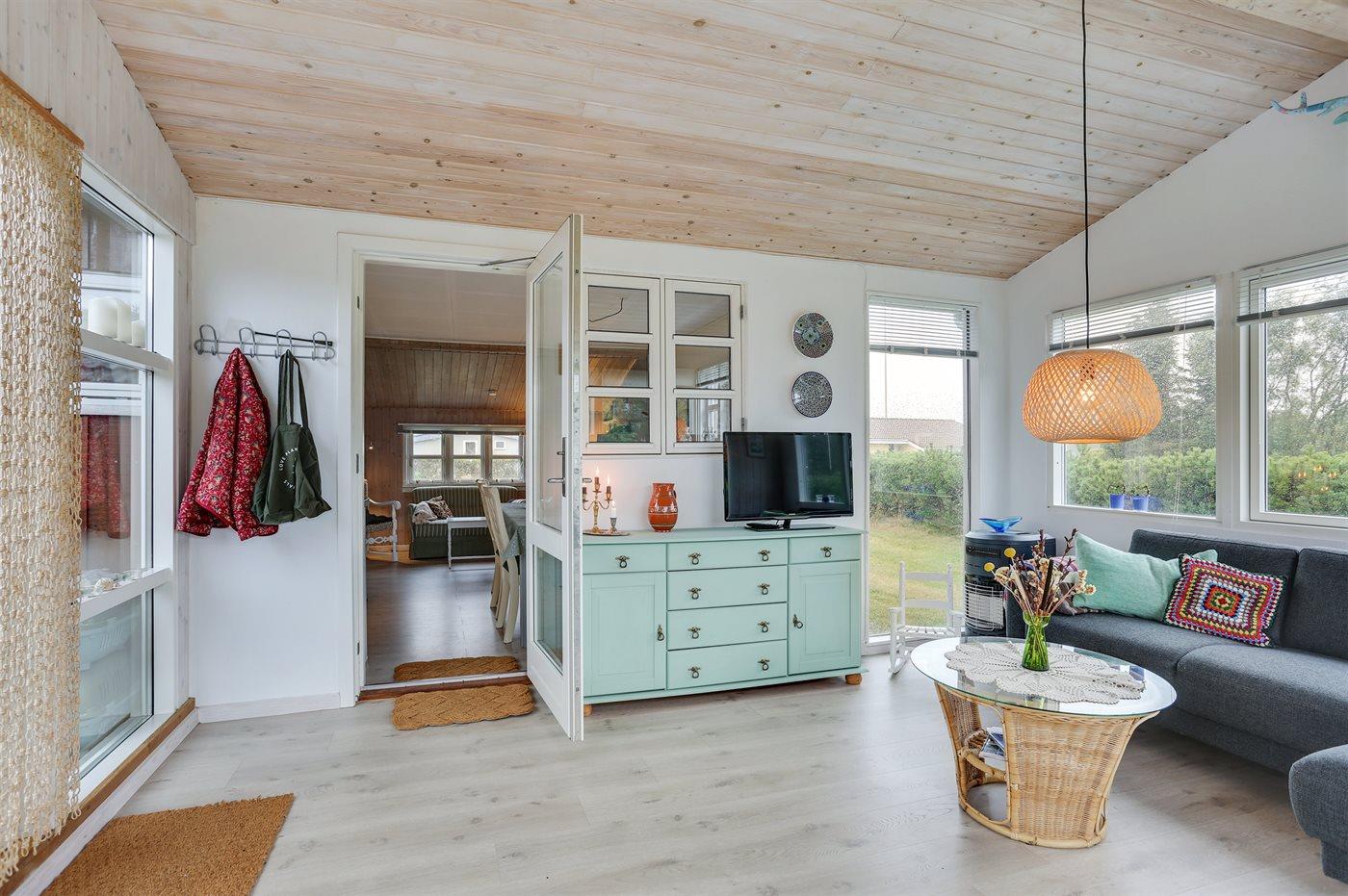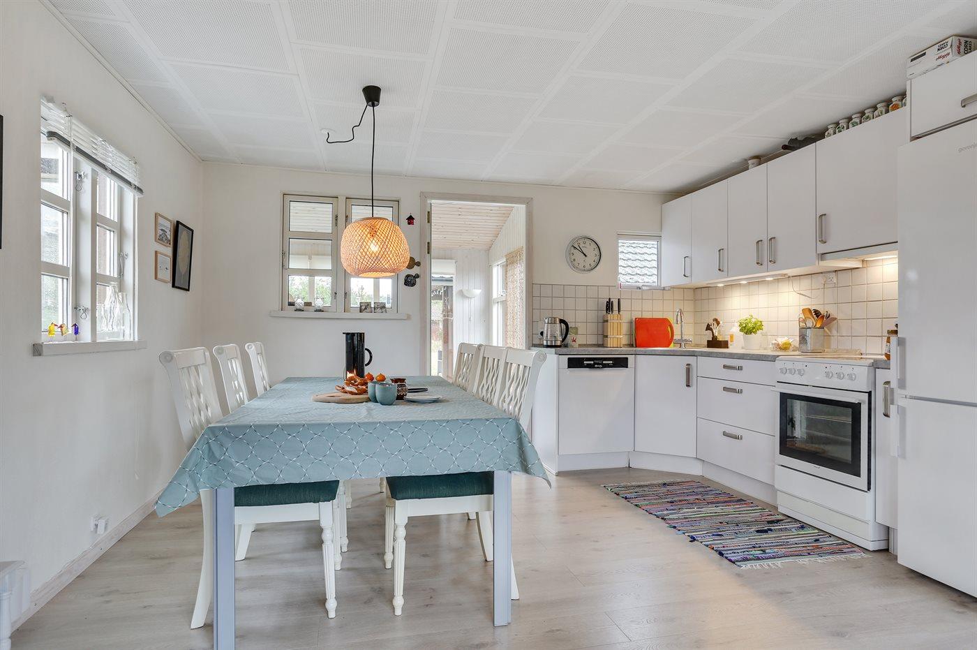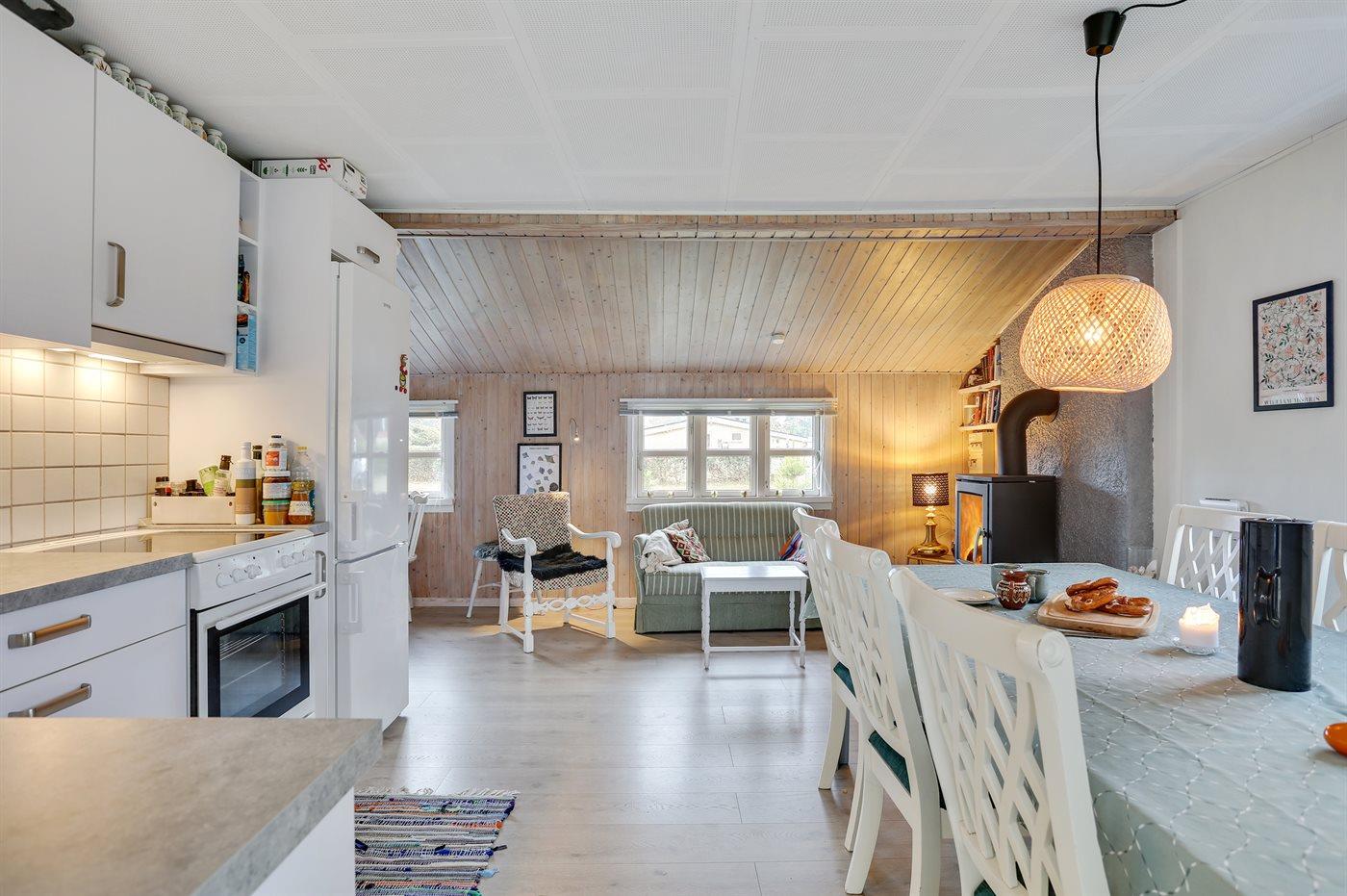 Gemütliches Ferienhaus in der Nähe eines tollen, kinderfreundlichen Badestrandes. Die Einrichtung des Hauses und das Geschirr sind im Retrostil gehalten. Die Gläser und Tassen sehen nicht alle gleich aus – das gehörte früher immer bei einem Ferienhausurlaub dazu!